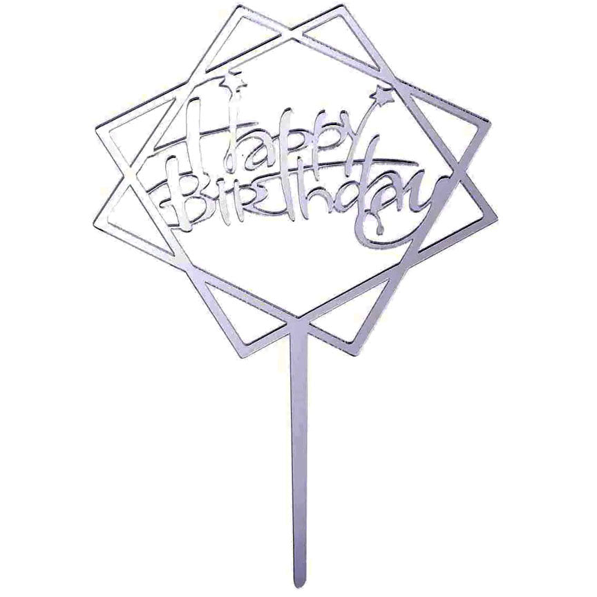 Gold Acrylic 'Happy Birthday' cake topper measures approximately 11.5cm (high) x 11.5cm (wide) with spike measuring 6cm.