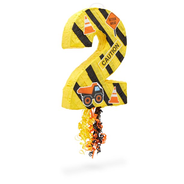 Children and adults of all ages will enjoy their shot at breaking this number 2 pinata to reveal the fun toys, delicious chocolates, or colorful confetti hidden inside! The decorative yellow striped pinata will perfectly complement your construction birthday party supplies while creating a fun party game for your guests to enjoy. The small construction pinata measures 16.5 x 11.57 x 3 inches, simply use a rope to conveniently hang it off a ladder, roof, railing, or tree to get the party started!
