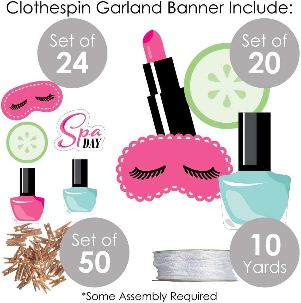 Spa Day - Girls Makeup Party DIY Decorations - Clothespin Garland Banner - 44 Pieces
