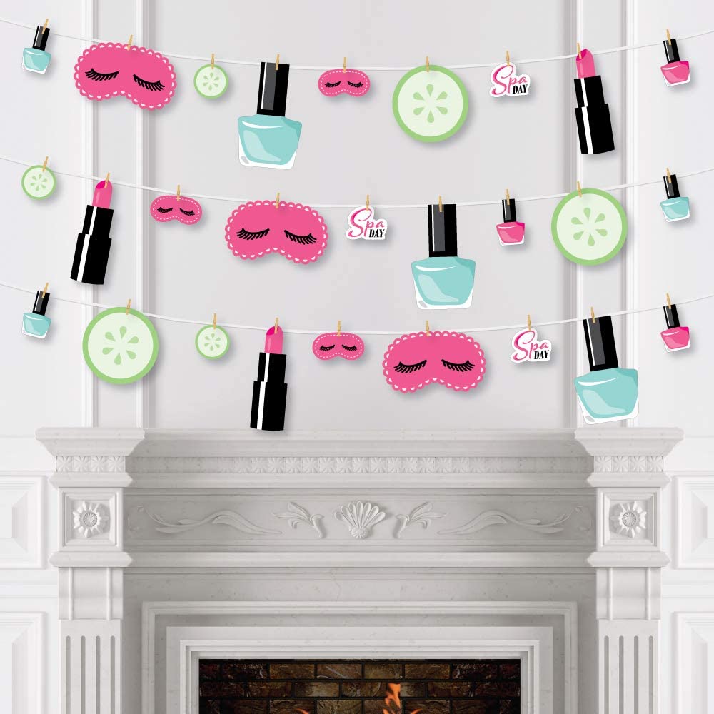 • PREMIUM PARTY DECORATION: Spa Day large cut-outs are professionally printed double-sided. Small cut-outs are professionally printed with coordinating pattern on back, and all on sturdy cardstock paper with a photo-like shine. They are then individually cut, inspected and carefully packaged. Spa Day clothespin garland banner is a 44-piece DIY kit that can be used in many ways. Get inspired with this fun do-it-yourself girls makeup party decor kit!
