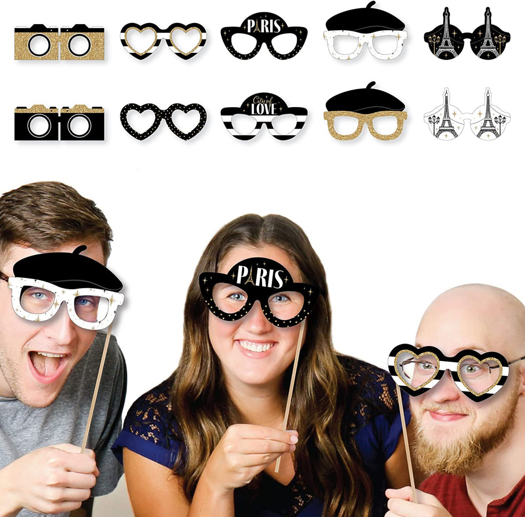 Stars Over Paris Glasses - Paper Card Stock Parisian Themed Party Photo Booth Props Kit - 10 Count is backordered and will ship as soon as it is back in stock.