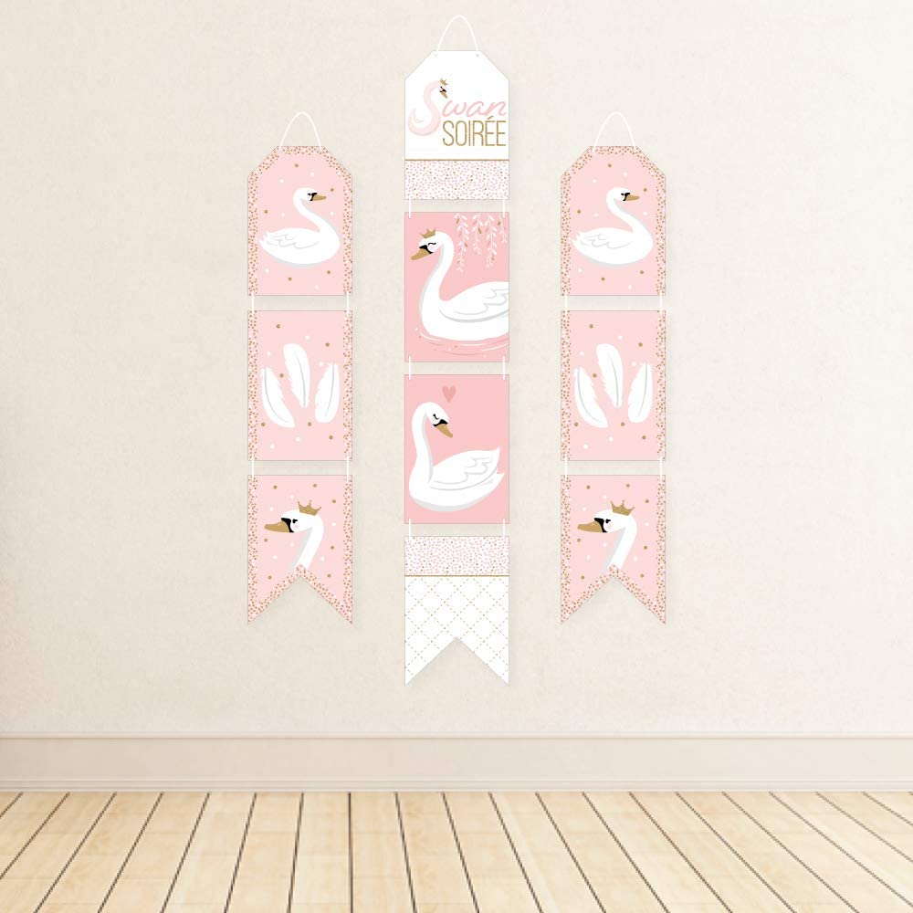 Swan Soiree - Hanging Vertical Paper Door Banners - White Swan Baby Shower or Birthday Party Wall Decoration Kit - Indoor Door Decor is backordered and will ship as soon as it is back in stock.