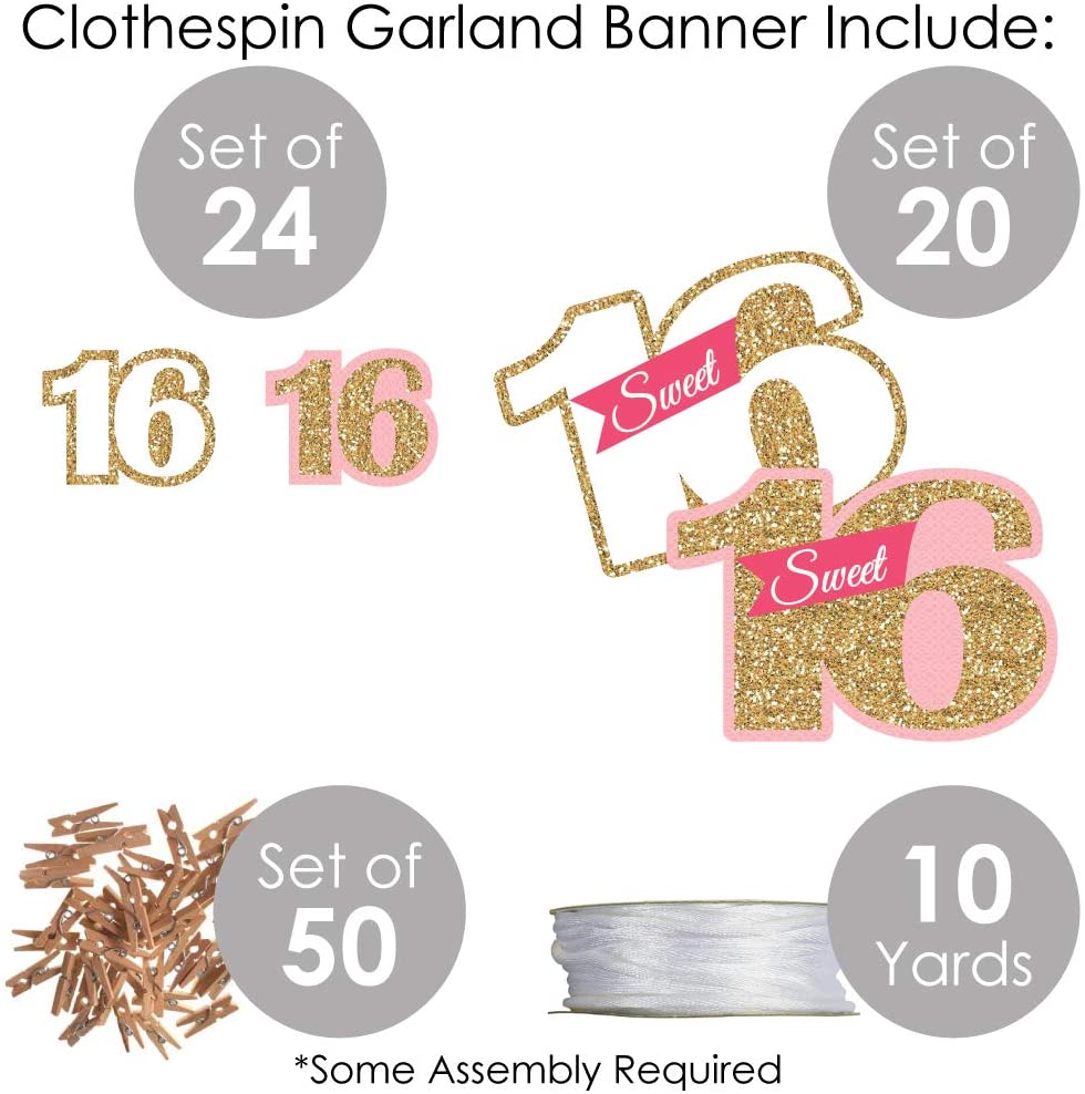 Sweet 16-16th Birthday Party DIY Decorations - Clothespin Garland Banner - 44 Pieces is backordered and will ship as soon as it is back in stock.