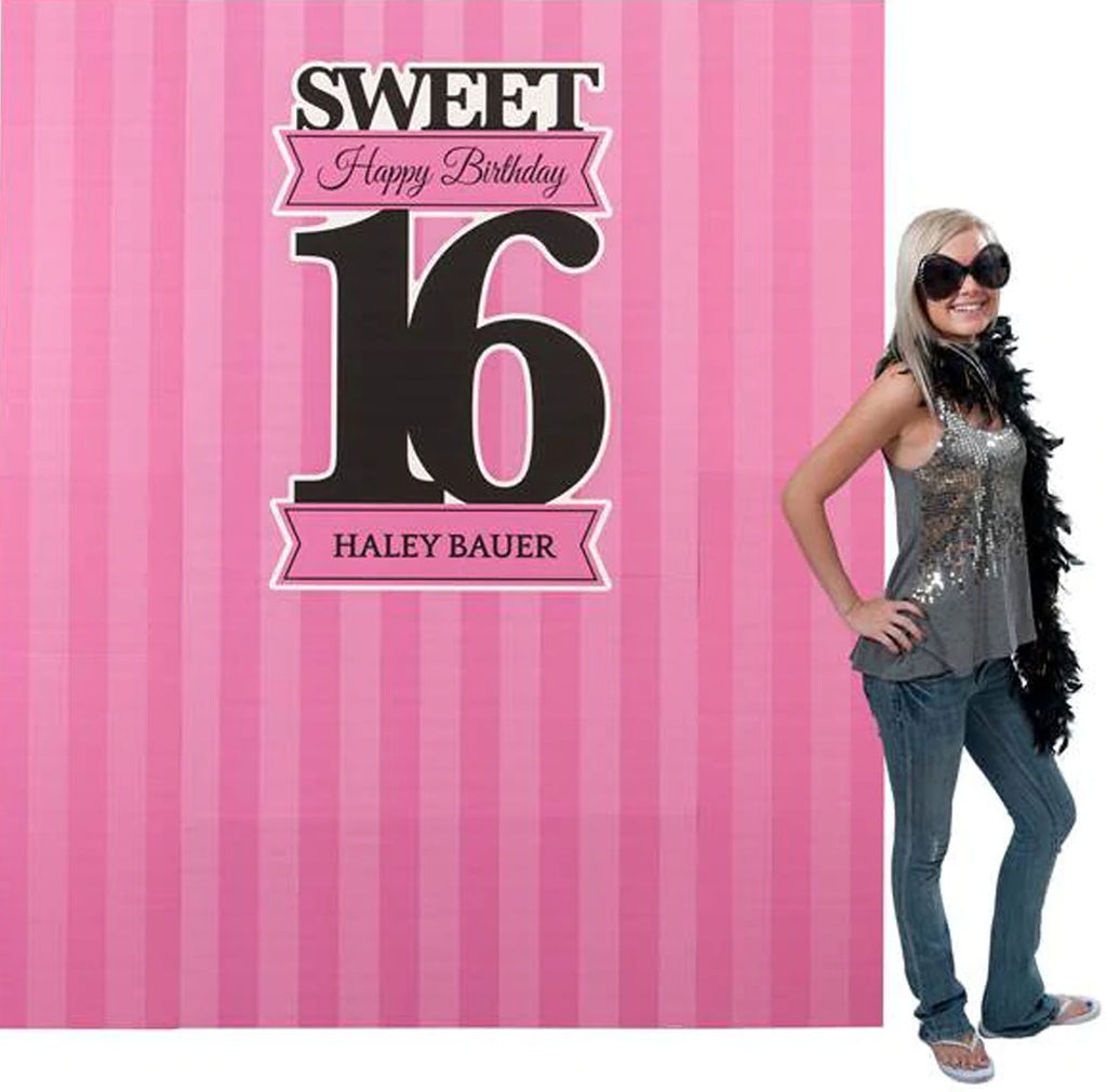 Give her the Sweet 16 she deserves! Our Sweet 16 Background features a fun stripe pattern along with SWEET 16 and your own wording. You can even select your accent color to match your other party decor.