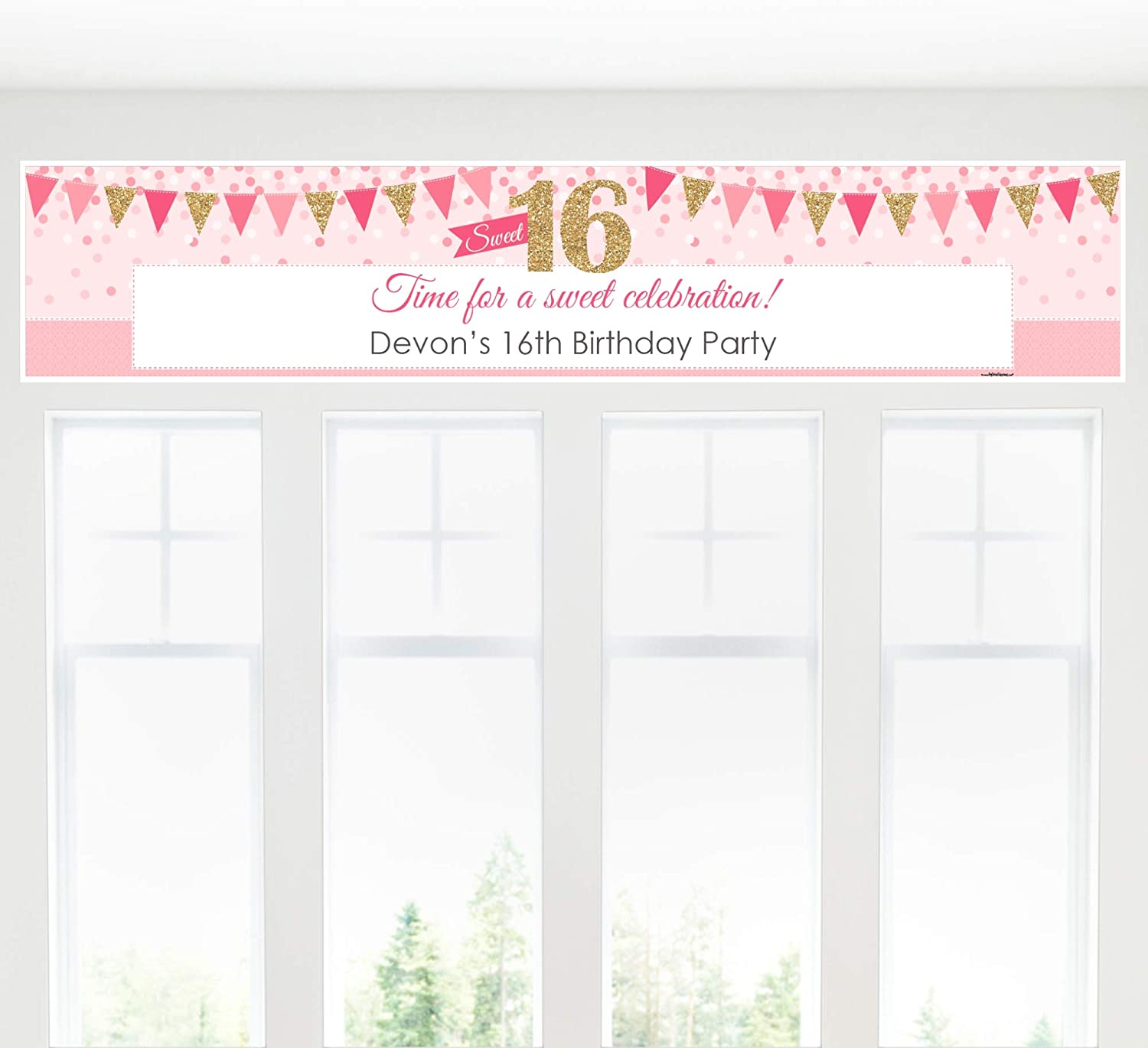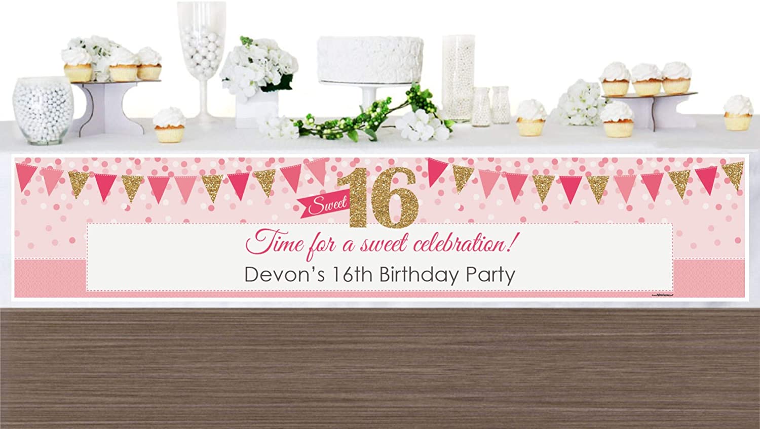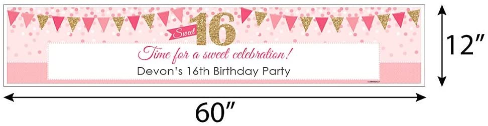 Custom Sweet 16 - Personalized 16th Birthday Party Decorations Party Banner is backordered and will ship as soon as it is back in stock.