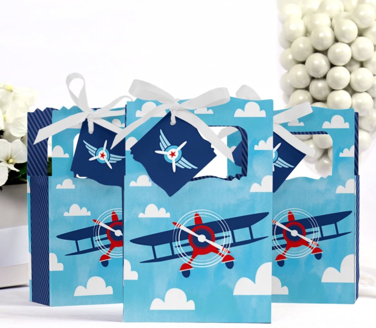 Taking Flight - Airplane - Vintage Plane Baby Shower or Birthday Party Favor Boxes - Set of 12 is backordered and will ship as soon as it is back in stock.