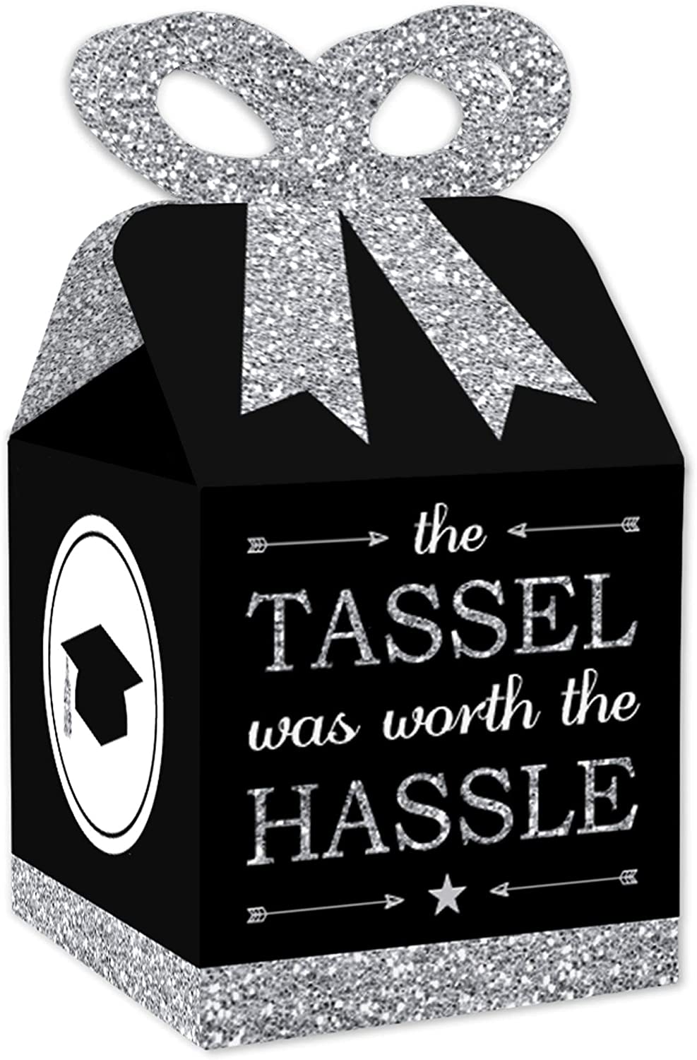 Tassel Worth the Hassle - Silver - Square Favor Gift Boxes - Graduation Party Bow Boxes - Set of 12 is backordered and will ship as soon as it is back in stock.