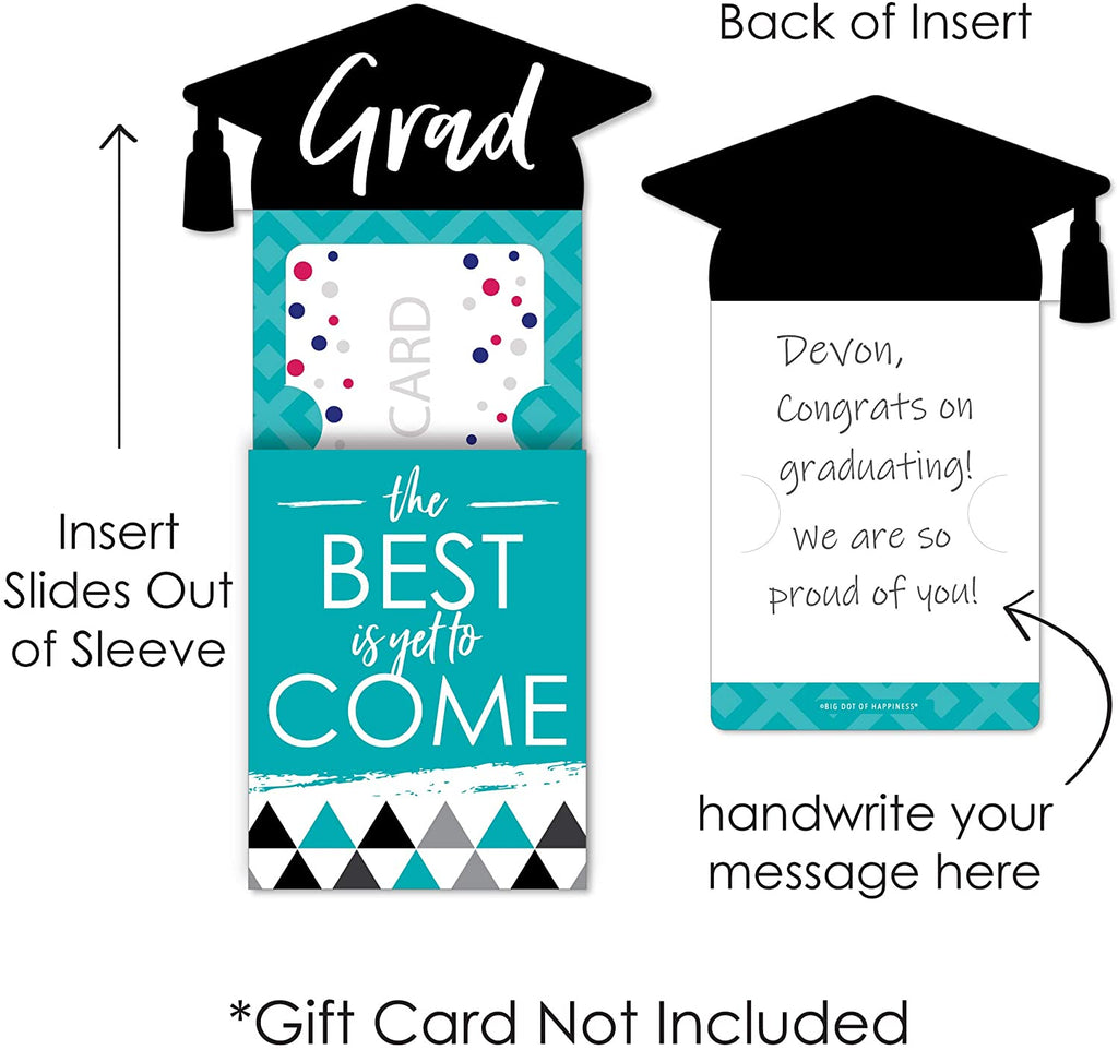 • PERFECT FIT: Each Teal Grad - Best is Yet to come Nifty Gifty Card Holder is approximately 4 inches x 5.5 inches in SIZE and fits a standard 3.5-inch x 2-inch gift card. Simply pull the insert up and out of the card holder sleeve, locate the pre-cut tabs on the insert, and place money or a gift card into the tabs.