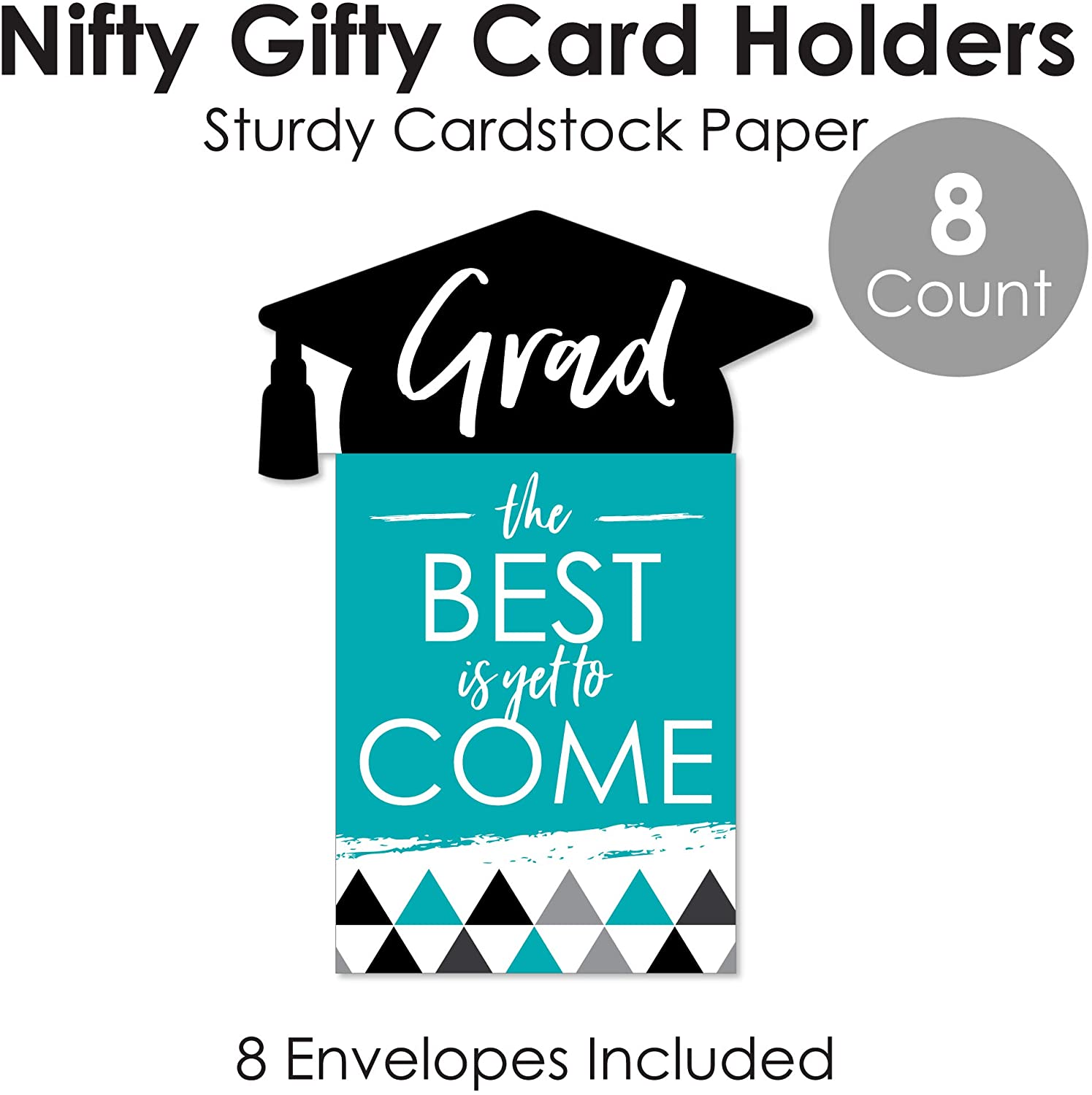 • Teal Grad - Best is Yet to come Nifty Gifty Card Holders INCLUDES 8 professionally printed gift card holders plus 8 premium white envelopes. Each card holder fits a standard gift card or cash.