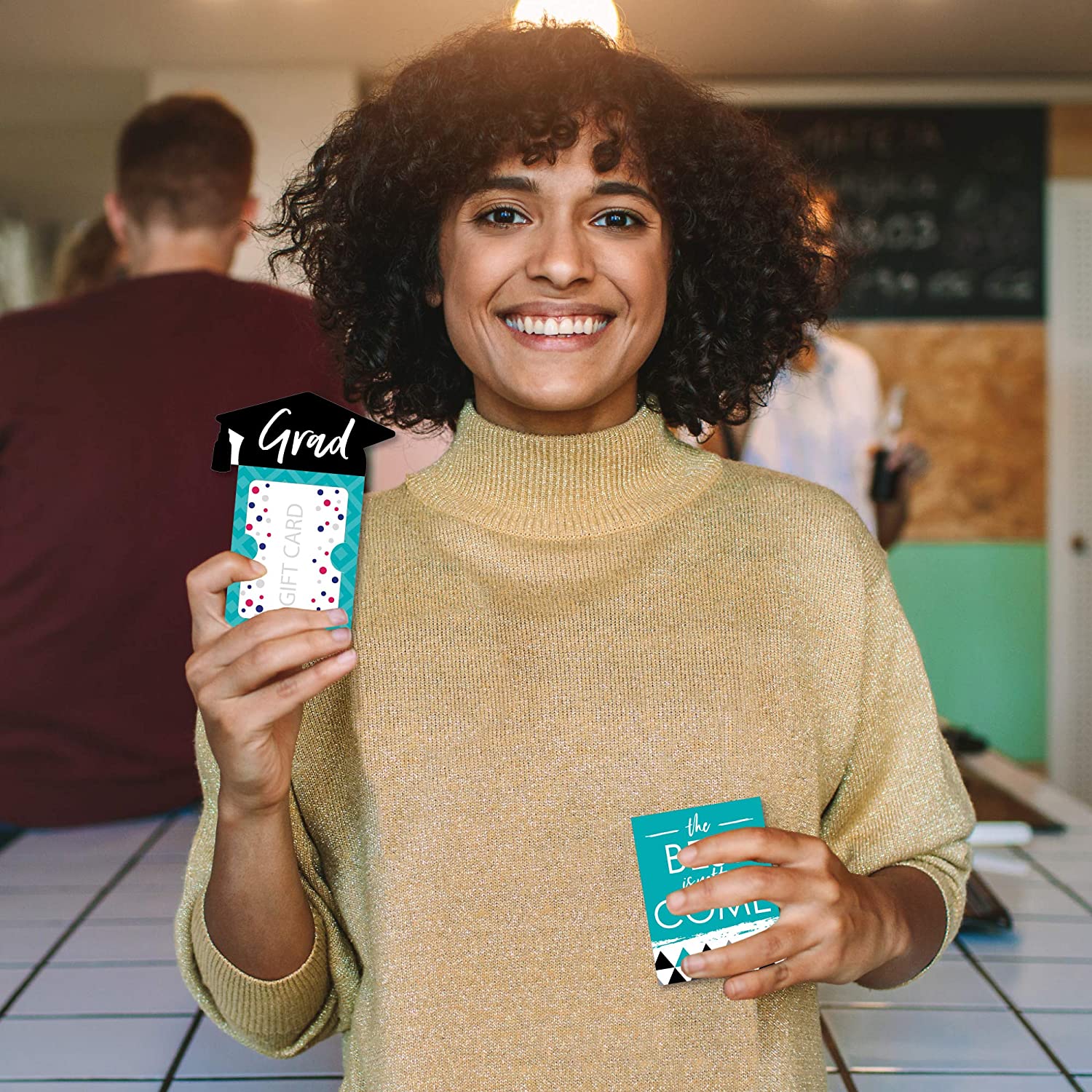 • PREMIUM GIFT CARD HOLDERS: Teal Grad - Best is Yet to come Nifty Gifty Card Holders are double-sided and professionally printed on sturdy cardstock paper with a photo-like shine. They are individually inspected and carefully packaged with high-quality white envelopes, making these card holders must-haves for all your upcoming events. Gift cards not included.