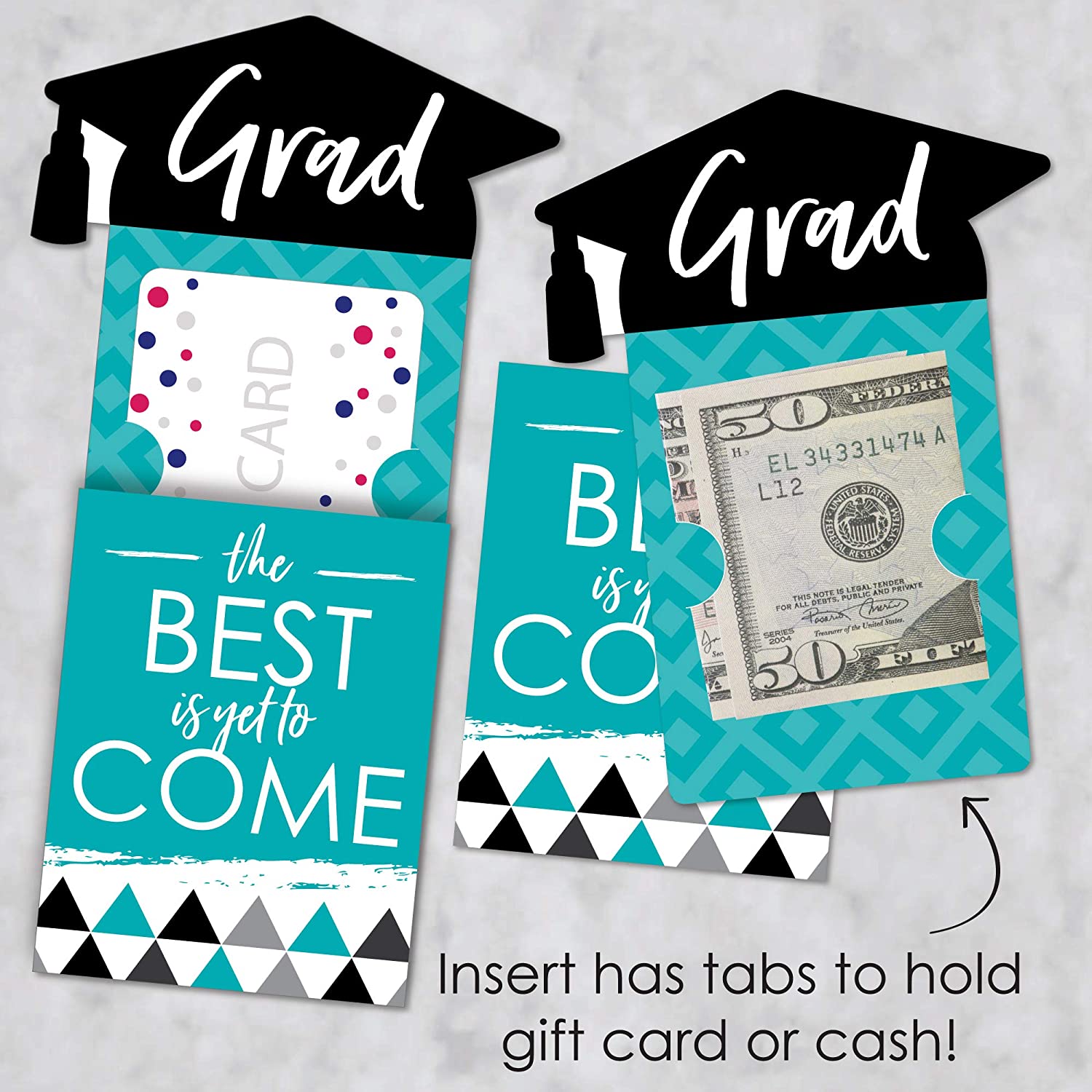 Teal Grad - Best is Yet to Come - Turquoise Graduation Party Money and Gift Card Sleeves - Nifty Gifty Card Holders - Set of 8