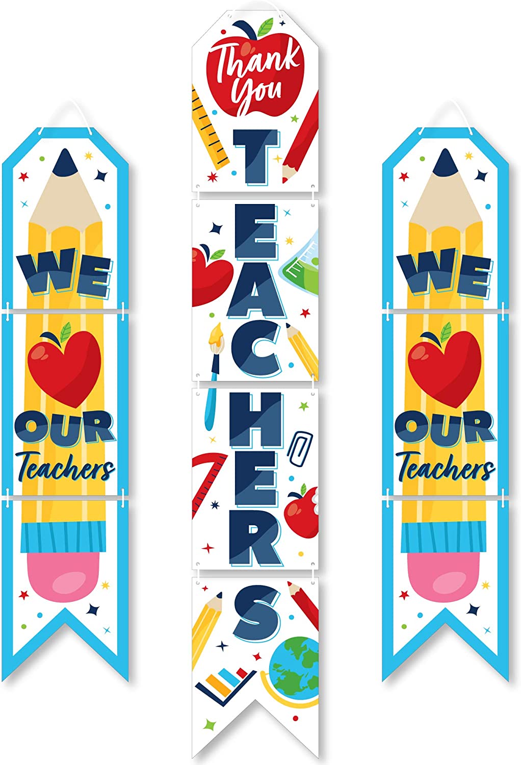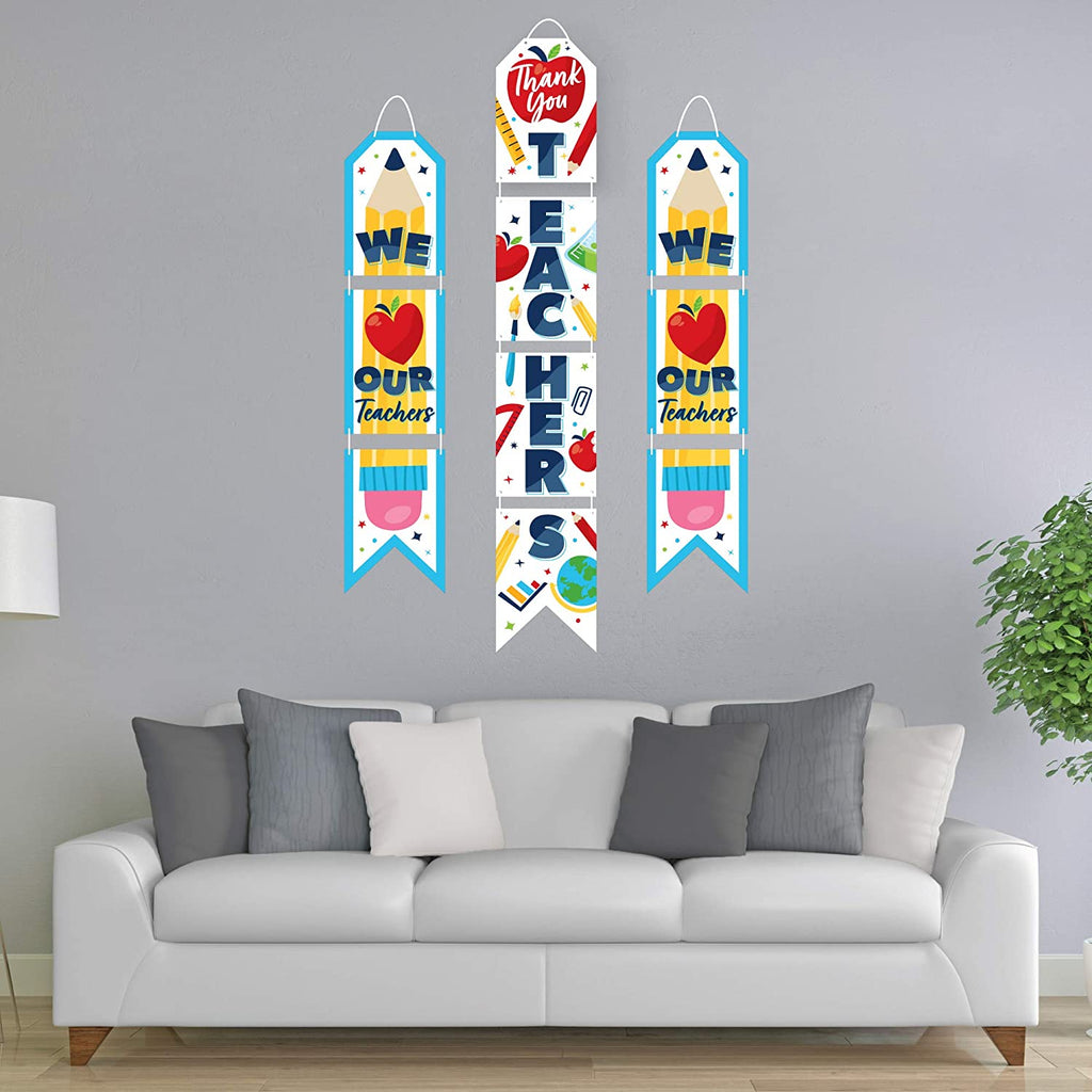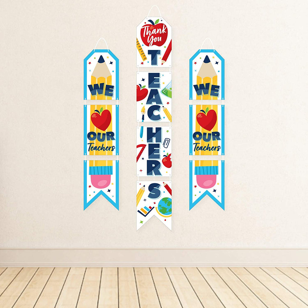 Thank You Teachers - Hanging Vertical Paper Door Banners - Teacher Appreciation Wall Decoration Kit - Indoor Door Decor is backordered and will ship as soon as it is back in stock.