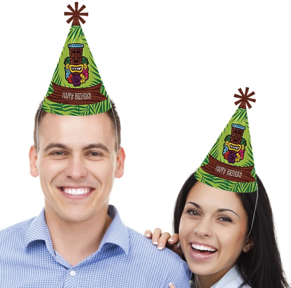 Tiki Luau - Cone Tropical Hawaiian Summer Happy Birthday Party Hats for Kids and Adults - Set of 8 is backordered and will ship as soon as it is back in stock.