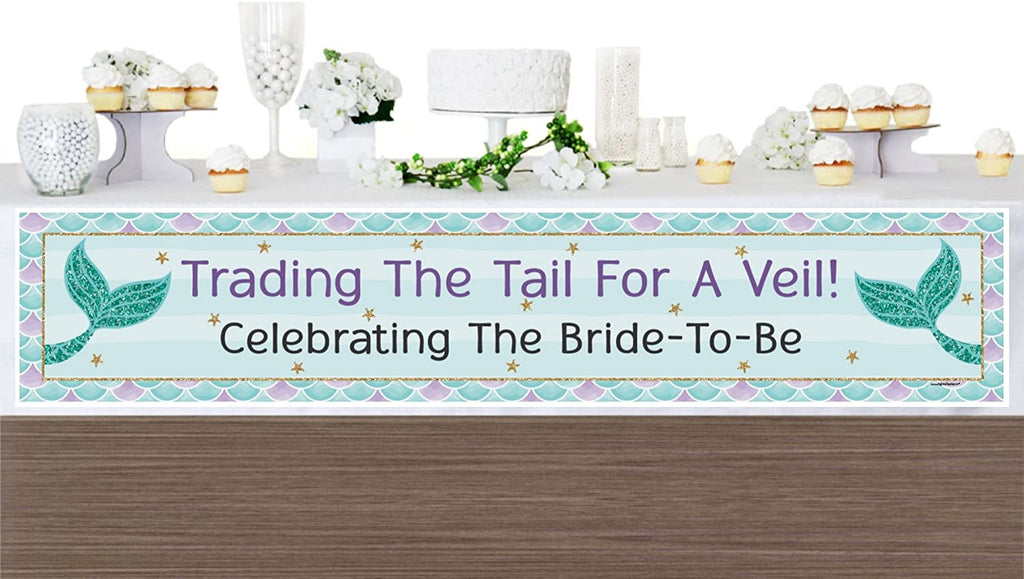 Trading The Tail for A Veil - Mermaid Bachelorette Party or Bridal Shower Decorations Party Banner is backordered and will ship as soon as it is back in stock.
