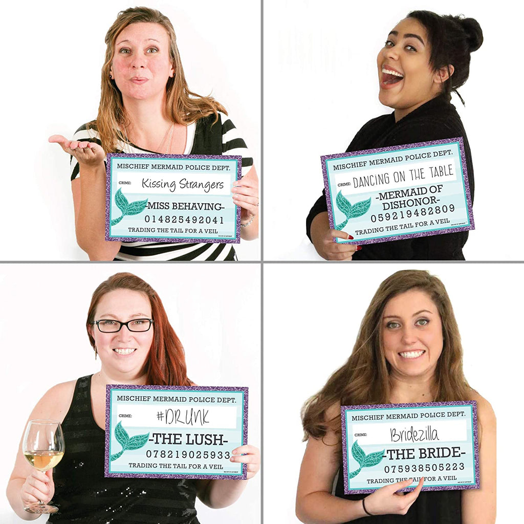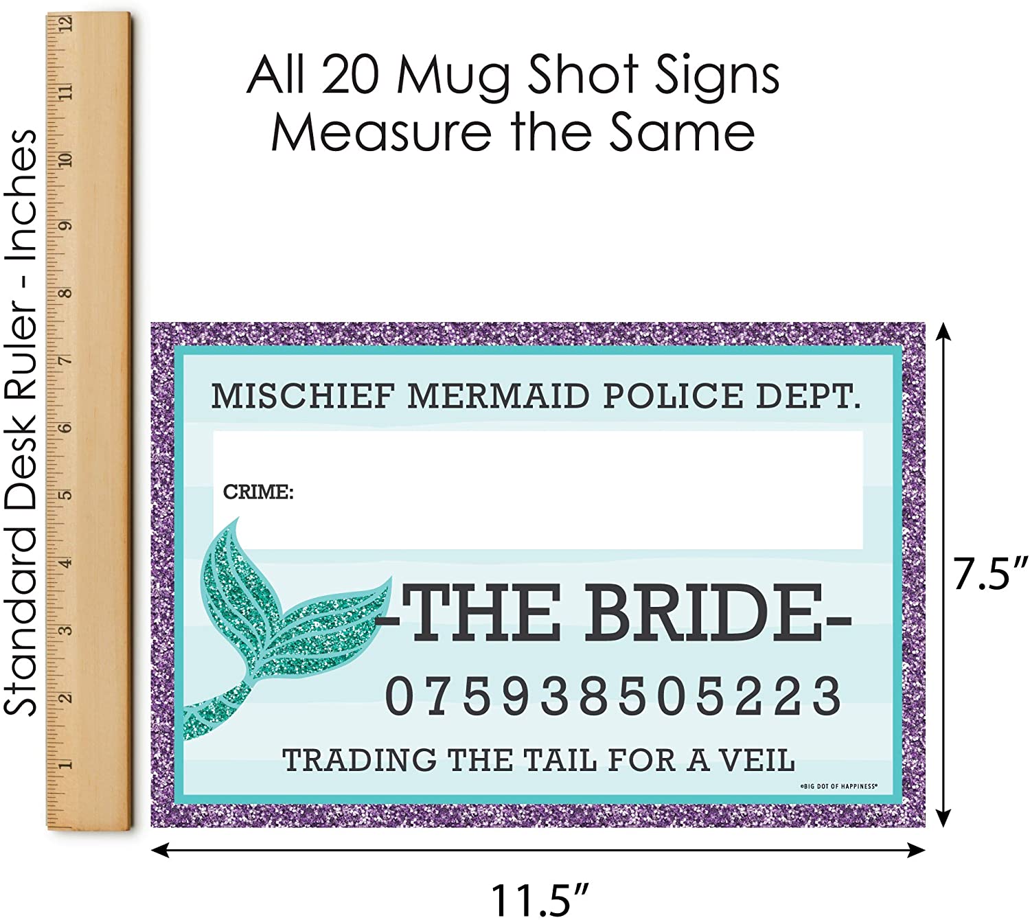Trading The Tail For A Veil - Mermaid Bachelorette Party or Bridal Shower Mugshot Signs - Photo Booth Props Party Mug Shots - 20 Count is backordered and will ship as soon as it is back in stock.
