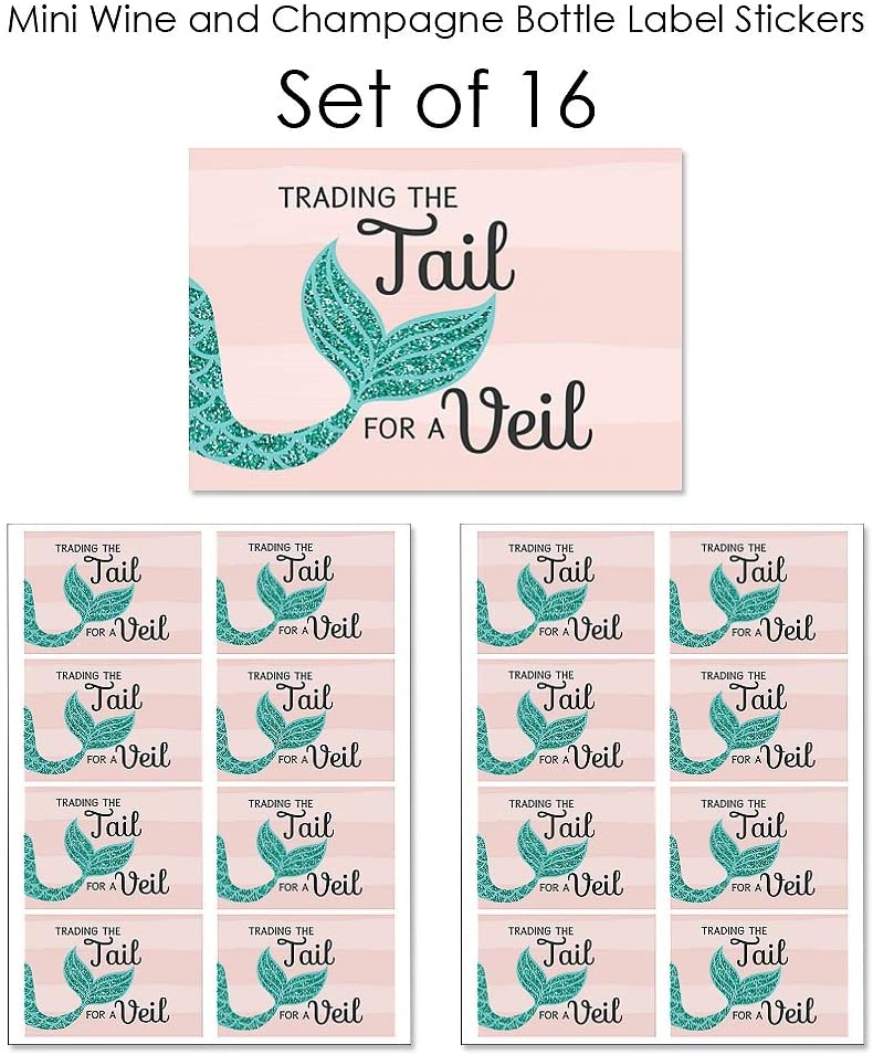 Trading The Tail For A Veil - Mini Wine and Champagne Bottle Label Stickers - Mermaid Bachelorette or Bridal Shower Favor Gift for Women and Men - Set of 16 is backordered and will ship as soon as it is back in stock.