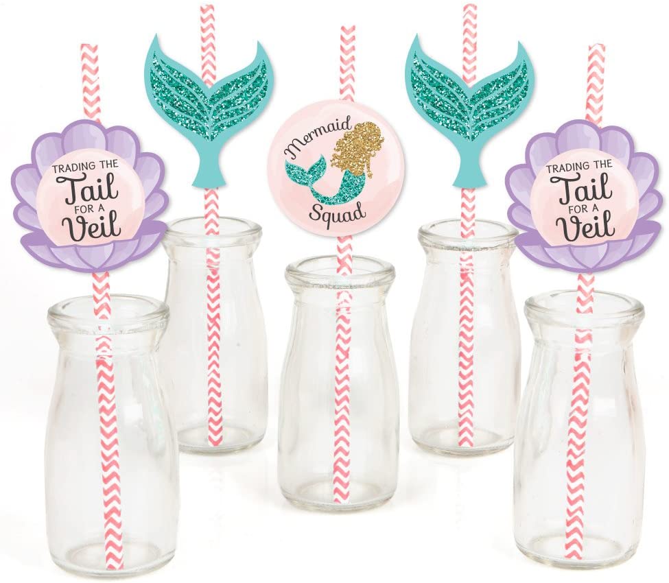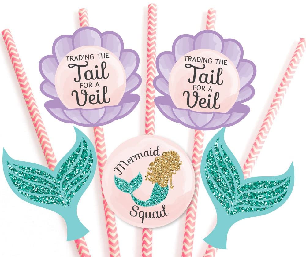 Trading The Tail for A Veil - Paper Straw Decor - Mermaid Bachelorette Party or Bridal Shower Striped Decorative Straws - Set of 24 is backordered and will ship as soon as it is back in stock.