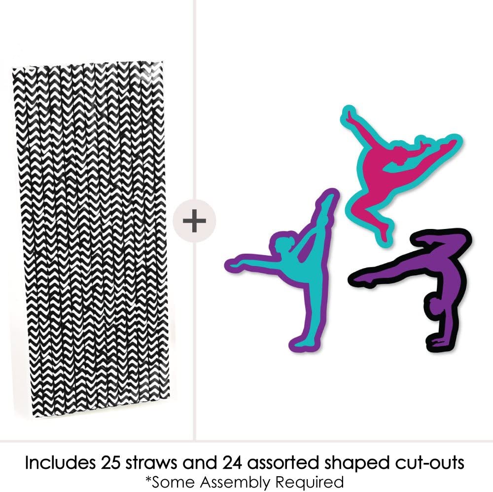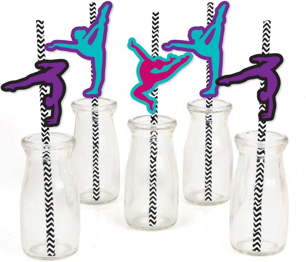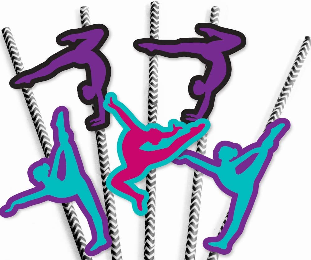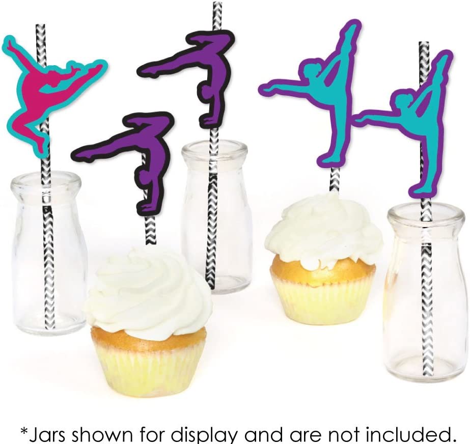 Tumble, Flip & Twirl - Gymnastics - Paper Straw Decor - Birthday Party or Gymnast Party Striped Decorative Straws - Set of 24 is backordered and will ship as soon as it is back in stock.