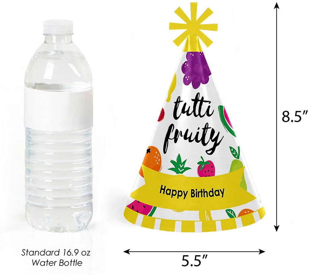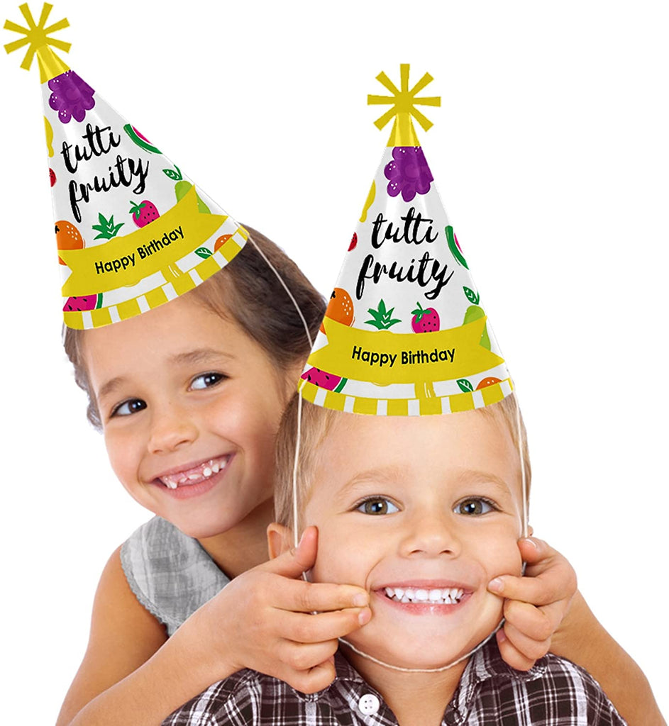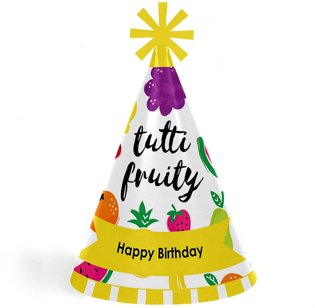 Tutti Fruity - Cone Frutti Summer Happy Birthday Party Hats for Kids and Adults - Set of 8 is backordered and will ship as soon as it is back in stock.