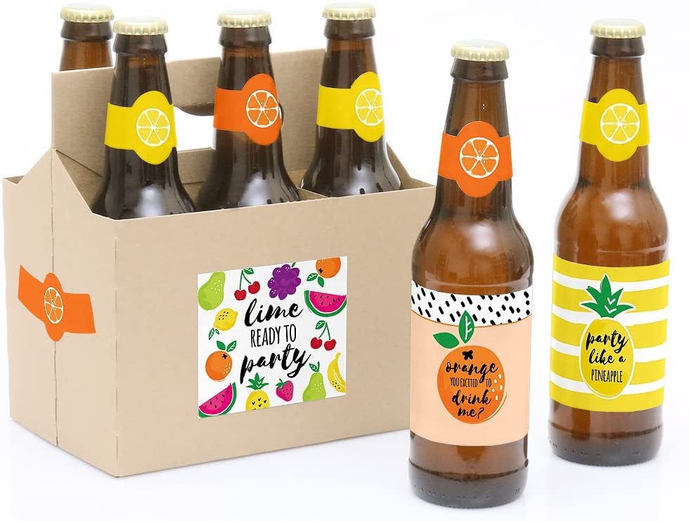 Tutti Fruity - Frutti Summer Baby Shower & Birthday Party Decorations for Women and Men - 6 Beer Bottle Label Stickers and 1 Carrier is backordered and will ship as soon as it is back in stock.