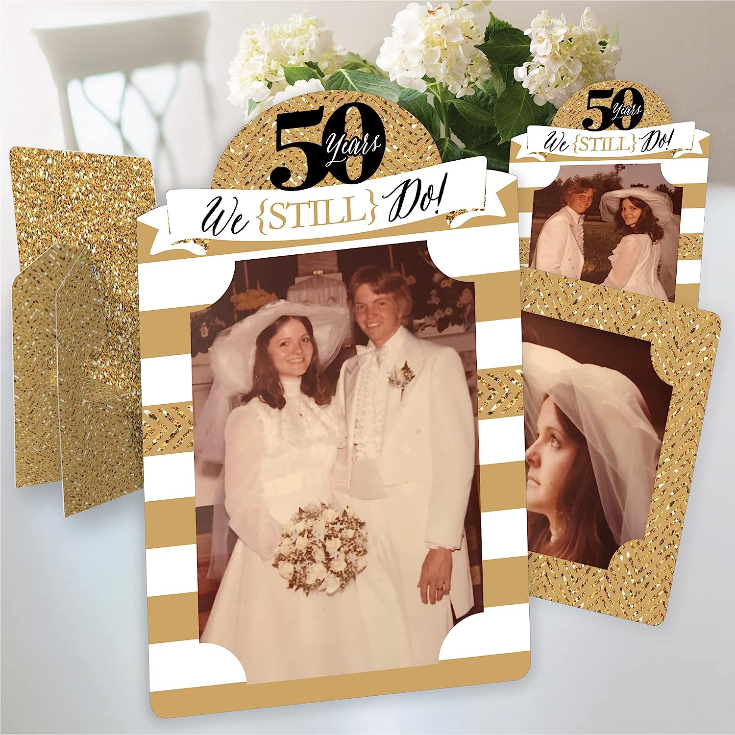 • High-Quality Supply: We Still Do - 50th Wedding Anniversary paper frames are professionally printed double-sided on heavy-duty cardstock paper with a photo-like shine. Frame with round top measures 5.5 inches wide by 8.75 inches tall. Standard rectangle frame measures 7.5 inches wide by 5.5 inches tall. Each stand measures 5.5 inches wide by 5.5 inches tall.