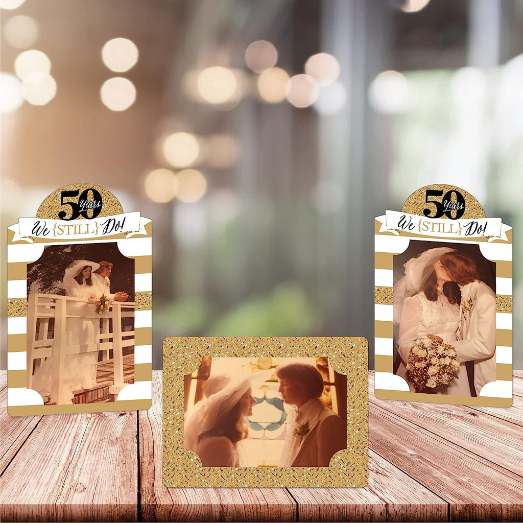• Decorative Display: Show off your guest of honor’s photos with the We Still Do - 50th Wedding Anniversary paper frames. Paper photo frames are perfect for displaying pictures on bookshelves, welcome tables, tablescape centerpieces, and fireplace mantel decorations.