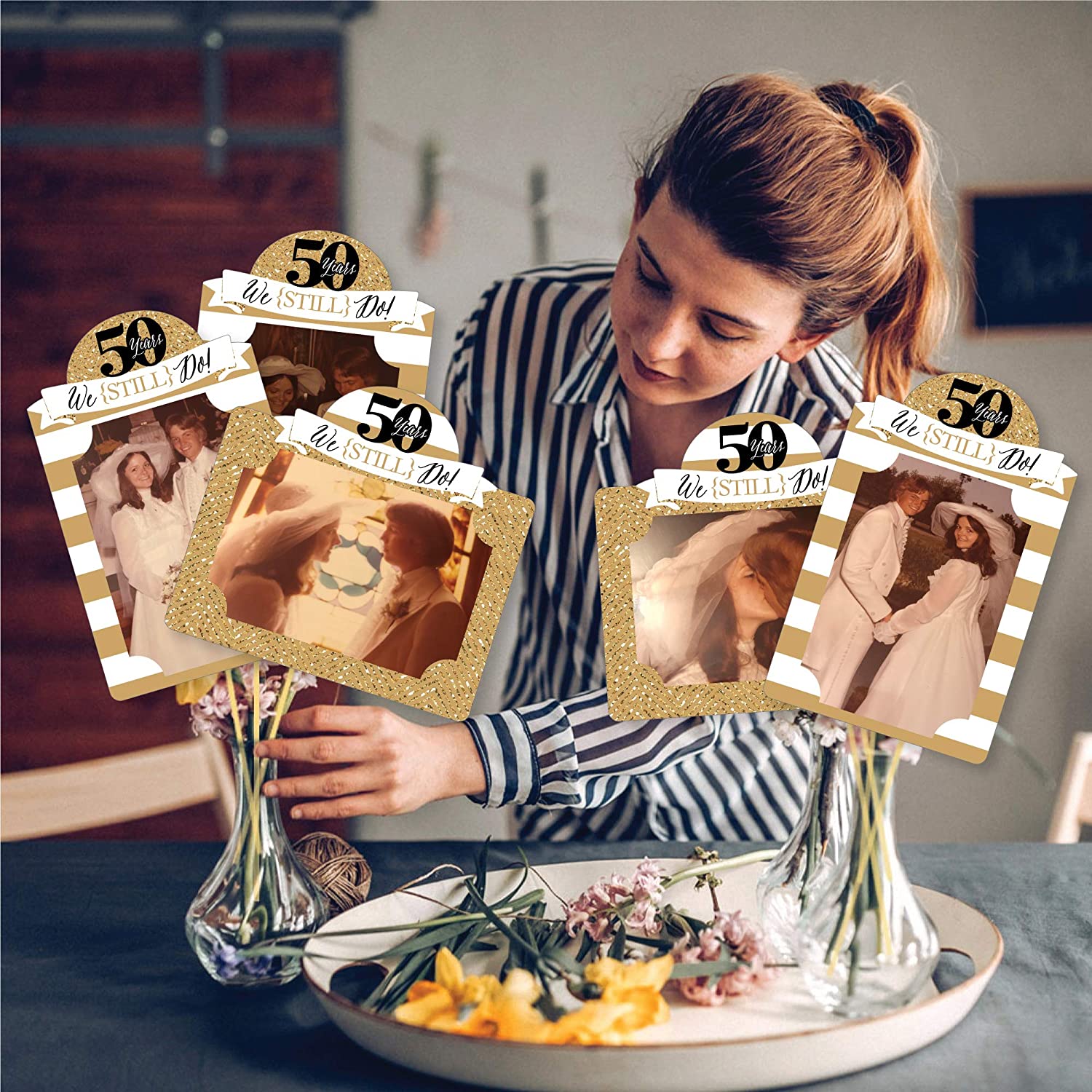 We Still Do - 50th Wedding Anniversary - Anniversary Party Picture Centerpiece Sticks - Photo Table Toppers - 15 Pieces is backordered and will ship as soon as it is back in stock.