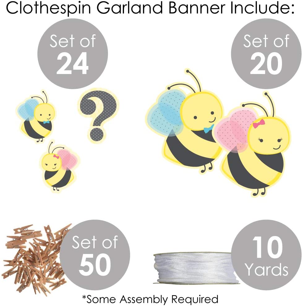 What Will it Bee - Gender Reveal DIY Decorations - Clothespin Garland Banner - 44 Pieces is backordered and will ship as soon as it is back in stock.