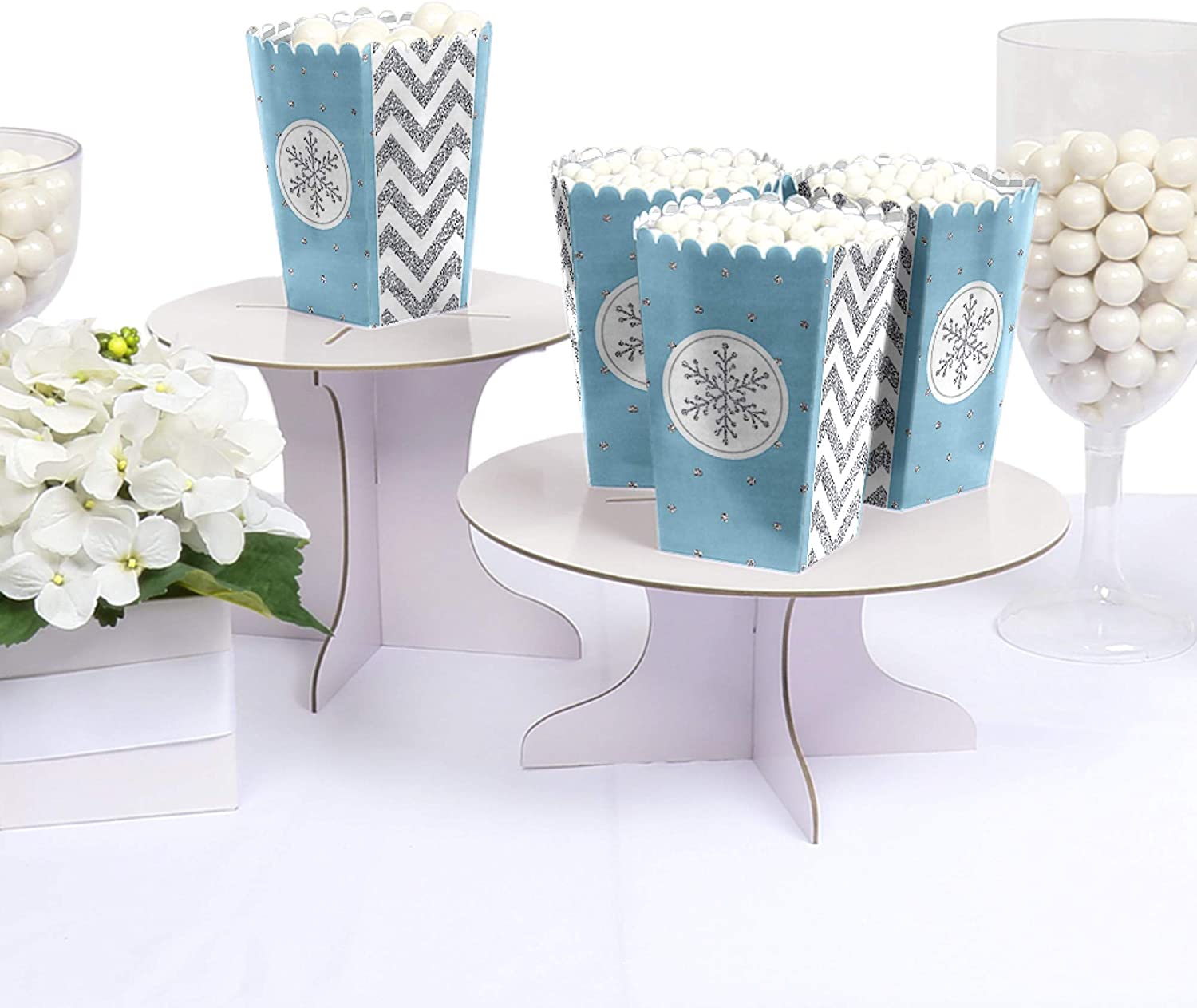 Winter Wonderland - Snowflake Holiday Party and Winter Wedding Popcorn Treat Boxes - Set of 12 is backordered and will ship as soon as it is back in stock.