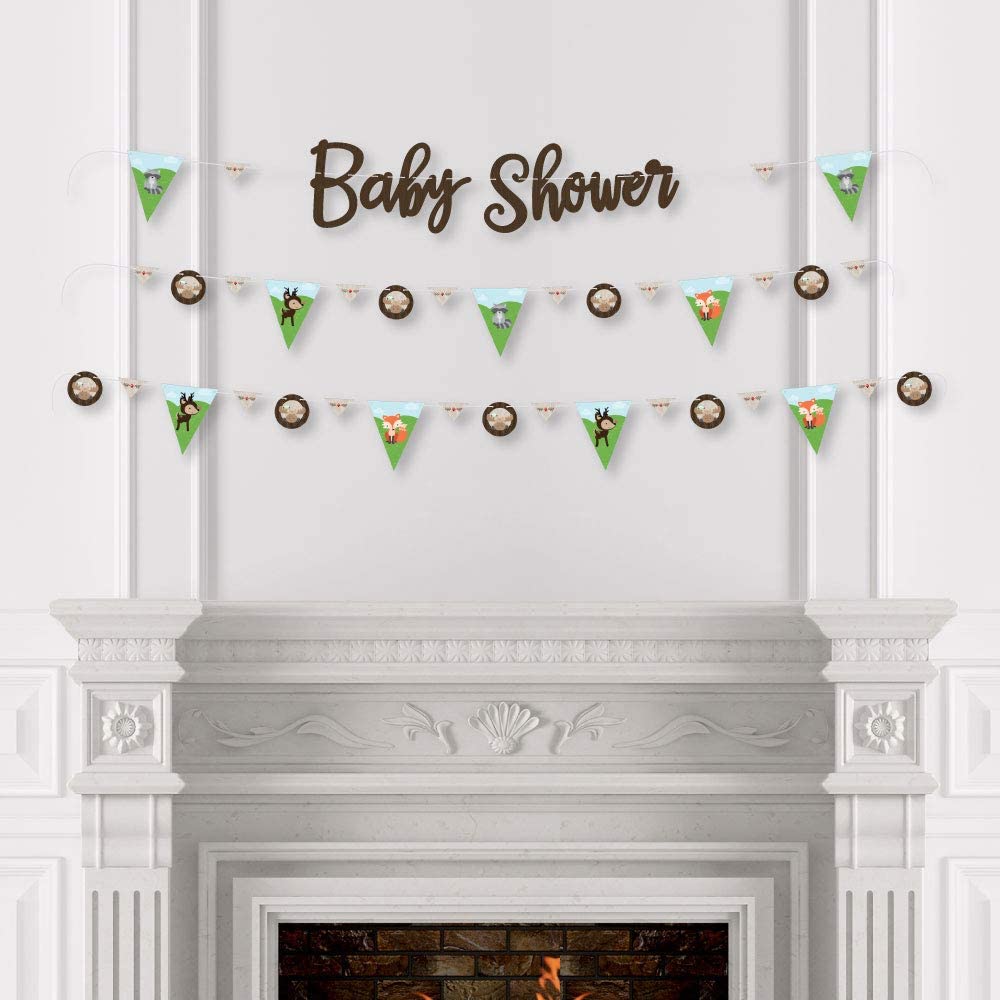 • BABY SHOWER DECORATIONS: A Woodland Creatures Bunting Banner is an easy way to decorate for your party and bring your forest friends theme to life. Hang at the entrance of your baby shower, over the food table or candy buffet, and even by the gift table.