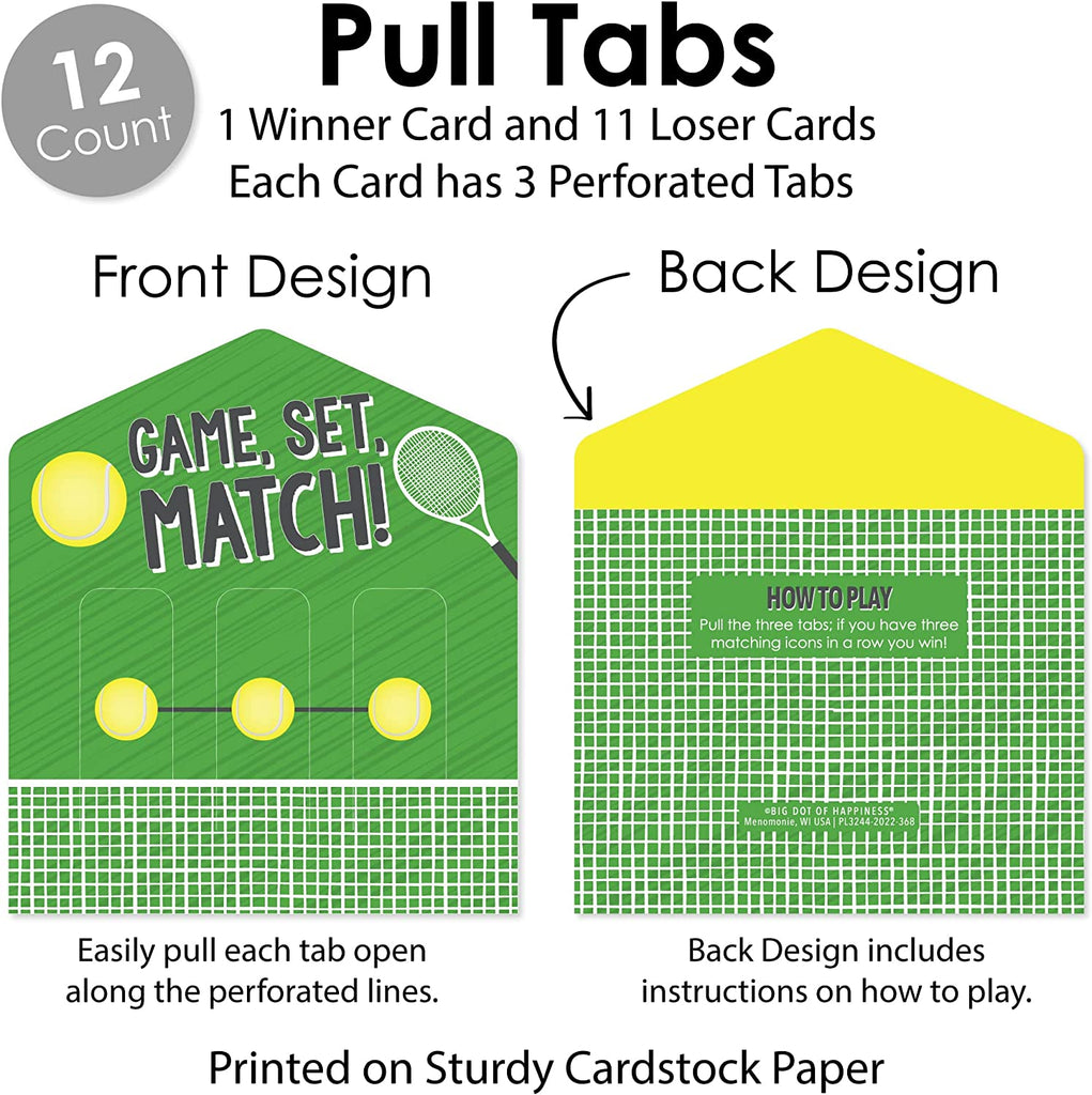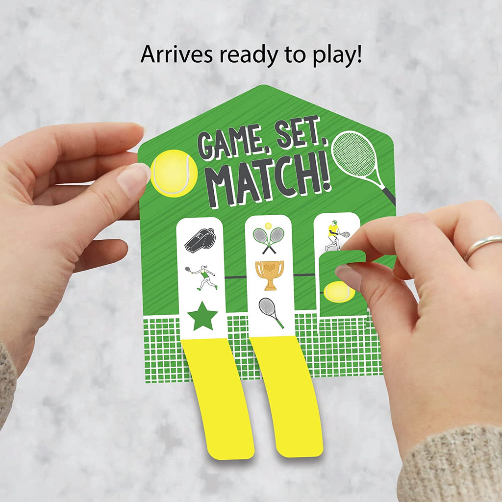 You Got Served - Tennis - Baby Shower or Tennis Ball Birthday Party Game Pickle Cards - Pull Tabs 3-in-a-Row - Set of 12 is backordered and will ship as soon as it is back in stock.