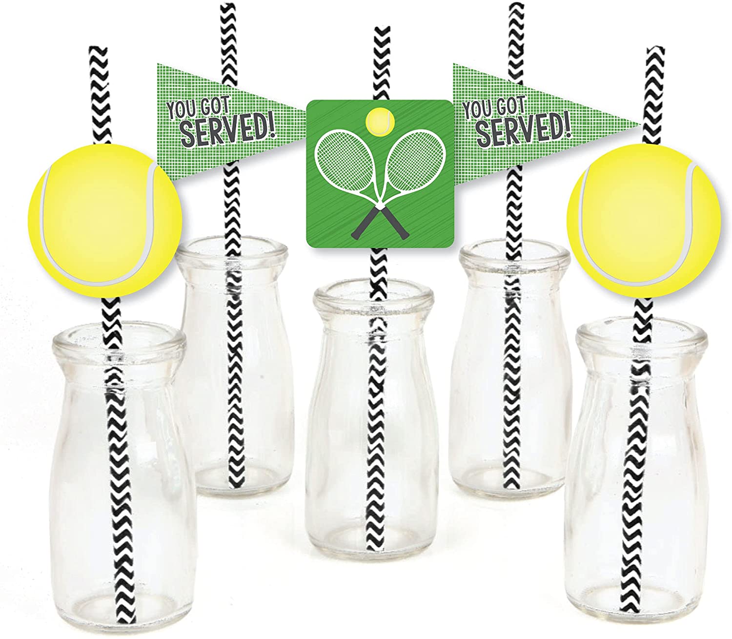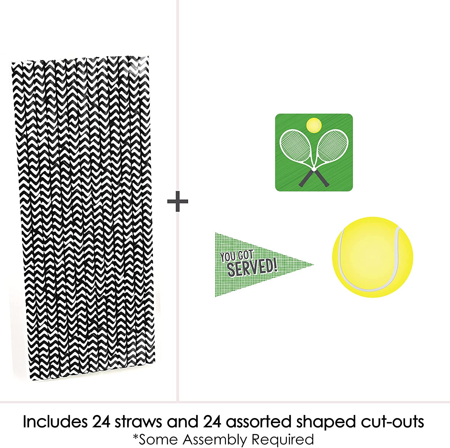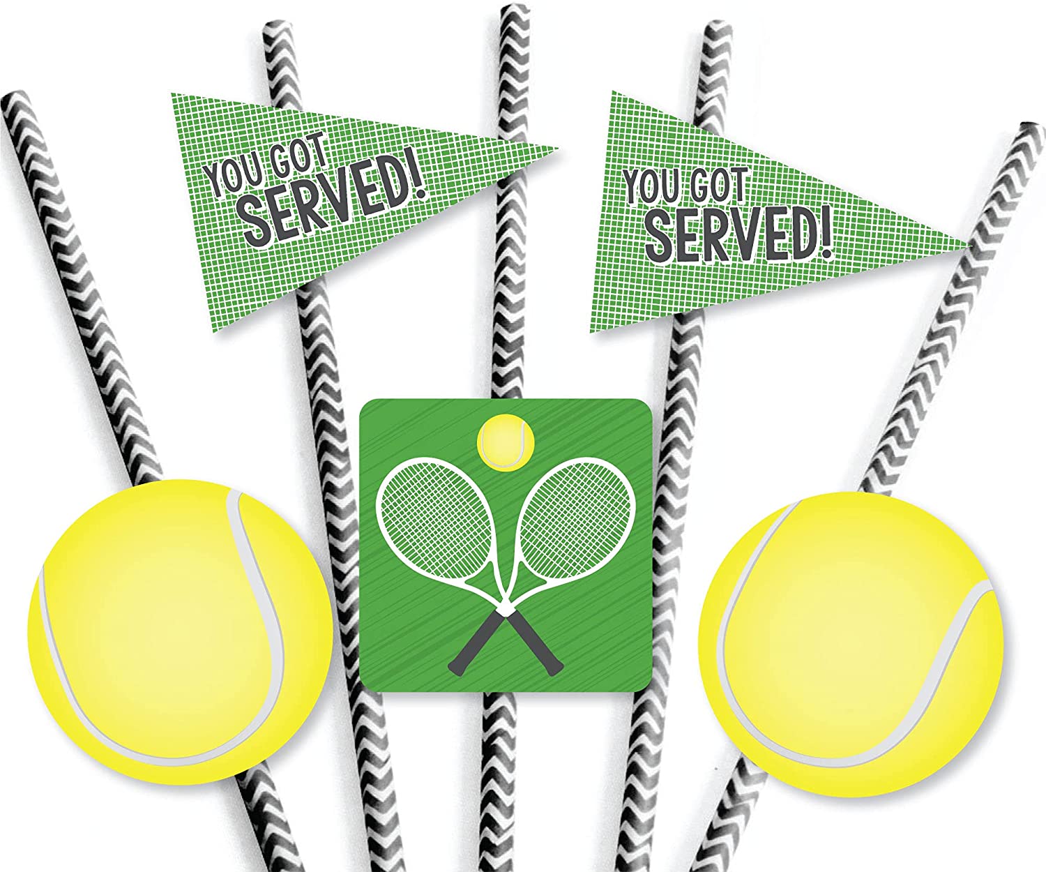 You Got Served - Tennis - Paper Straw Decor - Baby Shower or Tennis Ball Birthday Party Striped Decorative Straws - Set of 24 is backordered and will ship as soon as it is back in stock.