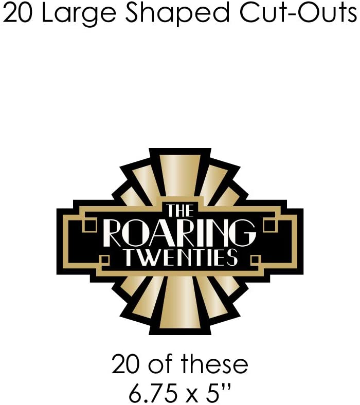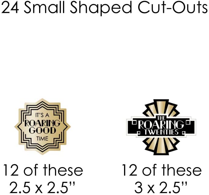 DIY 派对用品:咆哮的 20 年代小纸形剪纸,尺寸 12 张《咆哮的好时光》(2.5 英寸 x 2.5 英寸),12 张《咆哮的二十年代》(3 英寸 x 2.5 英寸)。咆哮的 20 年代大纸形剪纸,尺寸 20 张《咆哮的二十年代》(6.75 英寸 x 5 英寸)。