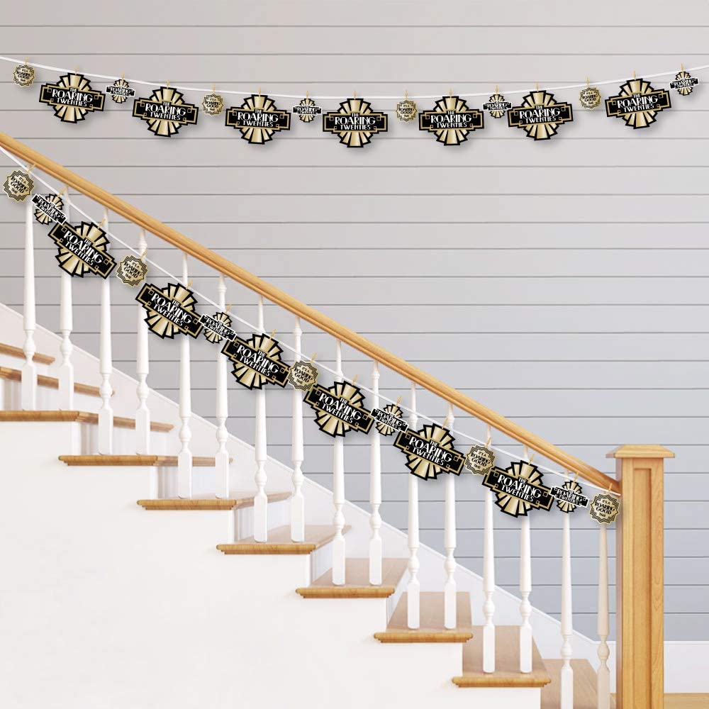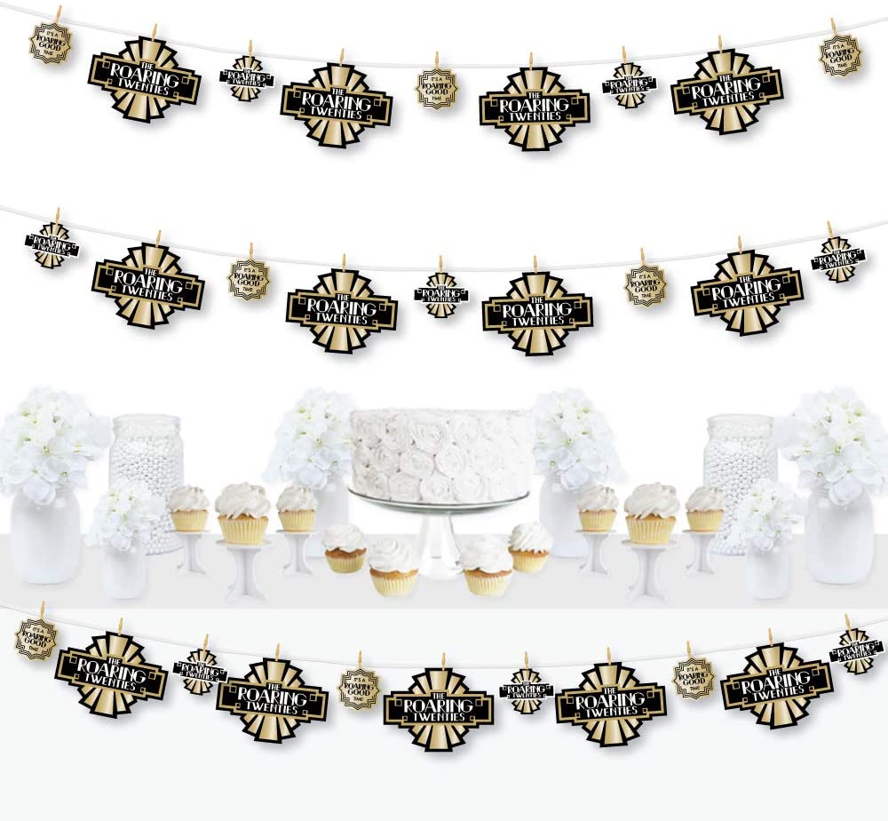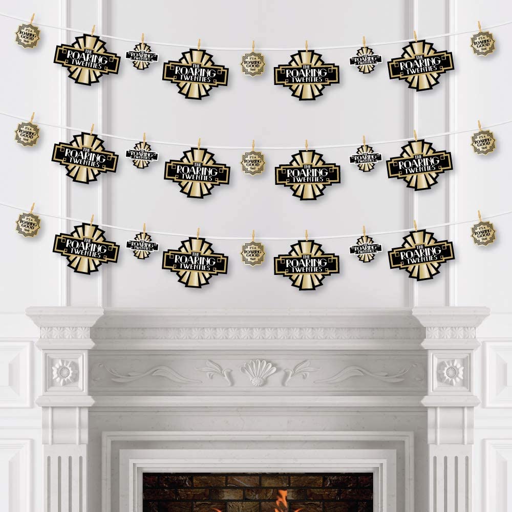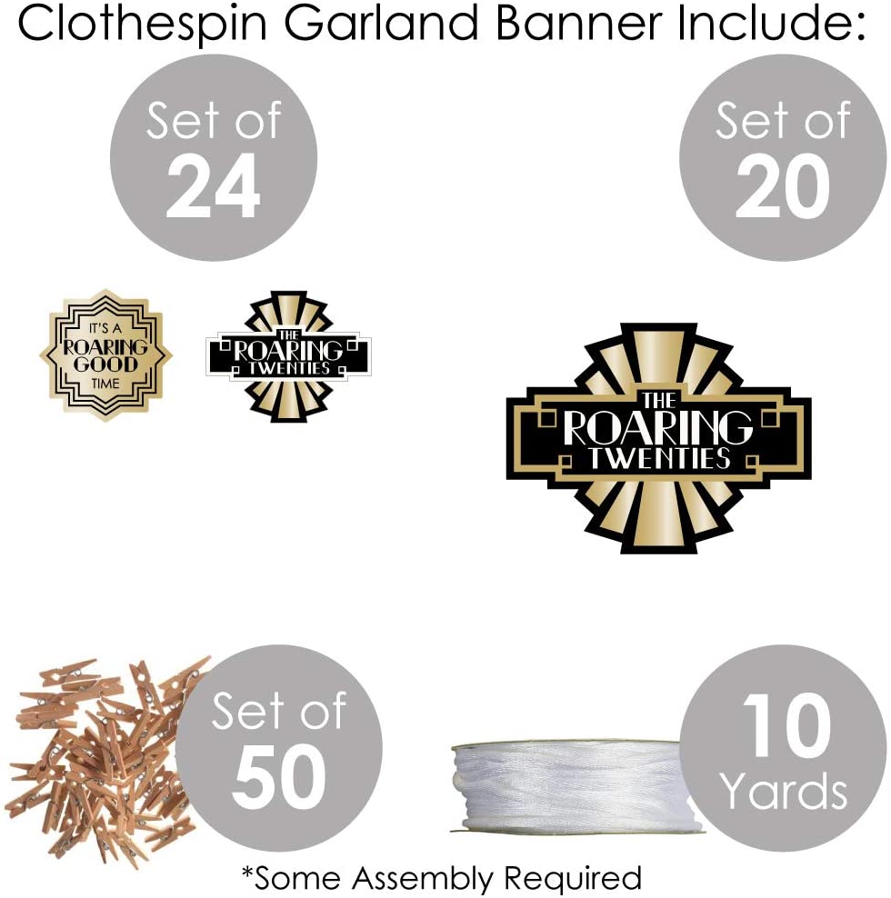 咆哮的二十年代 - 20 世纪 20 年代装饰艺术爵士派对 DIY 装饰 - 衣夹花环横幅 - 44 件