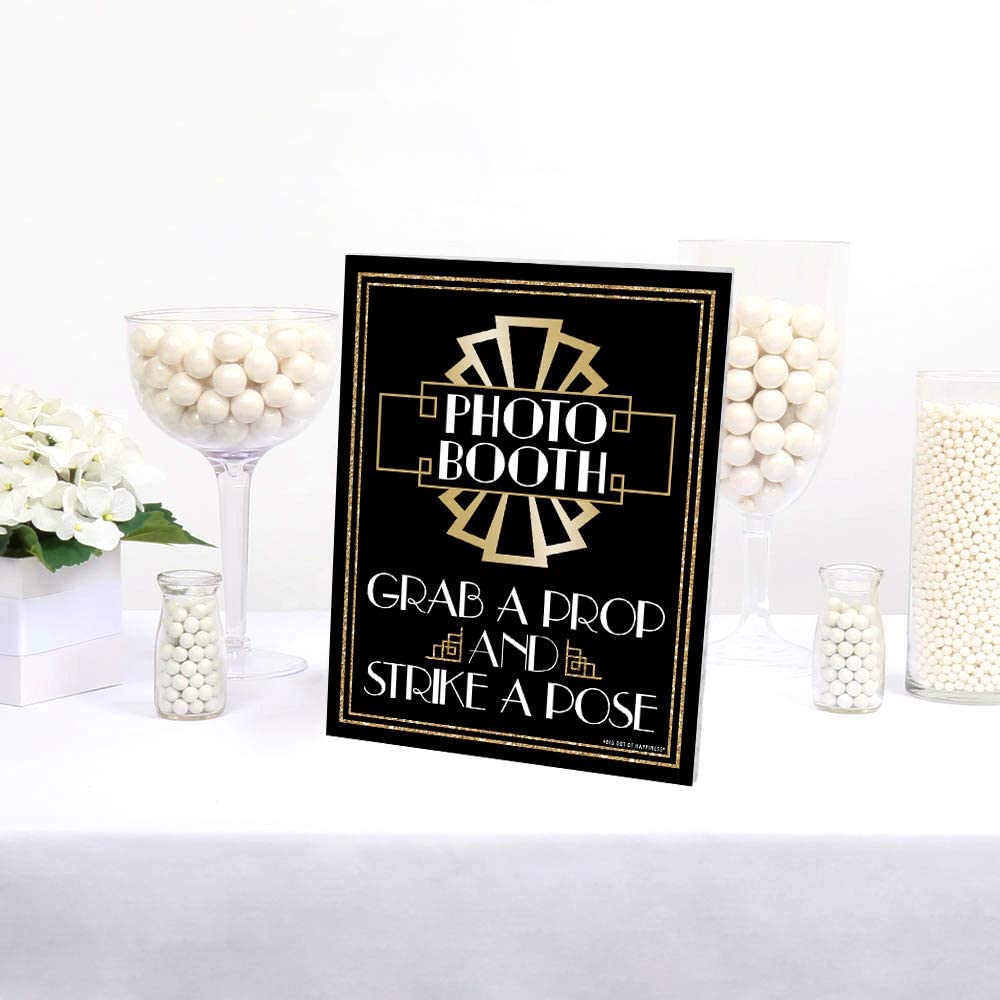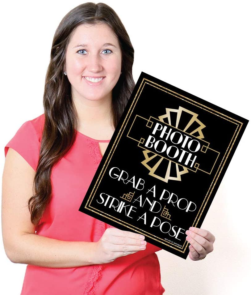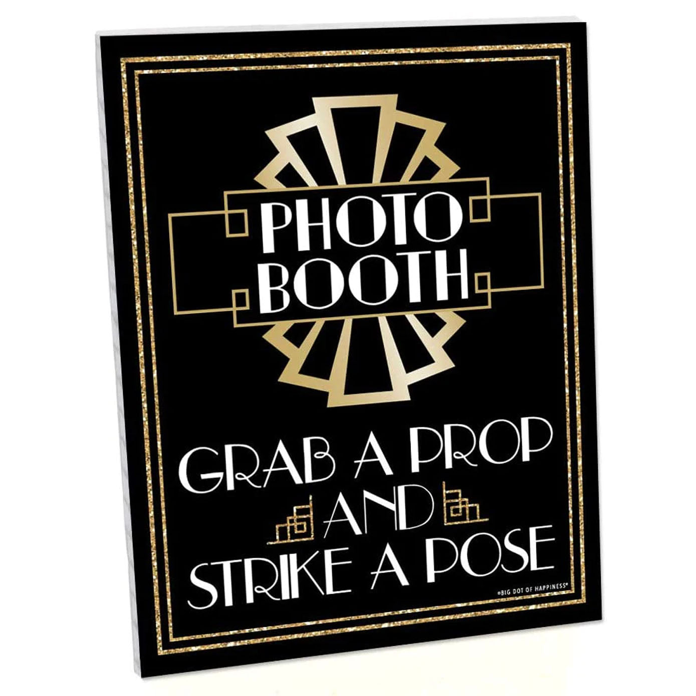 咆哮的 20 年代照相亭标志 - 20 世纪 20 年代装饰艺术爵士派对装饰 - 印在坚固的塑料材料上 - 10.5 x 13.75 英寸 - 带支架的标志 - 1 件 已缺货,一旦有货就会发货。