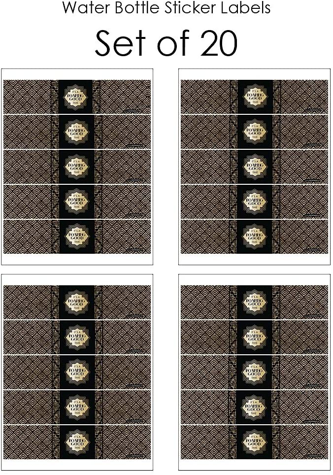 咆哮的20年代水瓶贴纸标签包含20个DIY水瓶标签。咆哮的20年代DIY派对用品非常适合快速装饰任何饮料瓶,打造符合你派对主题的风格。
