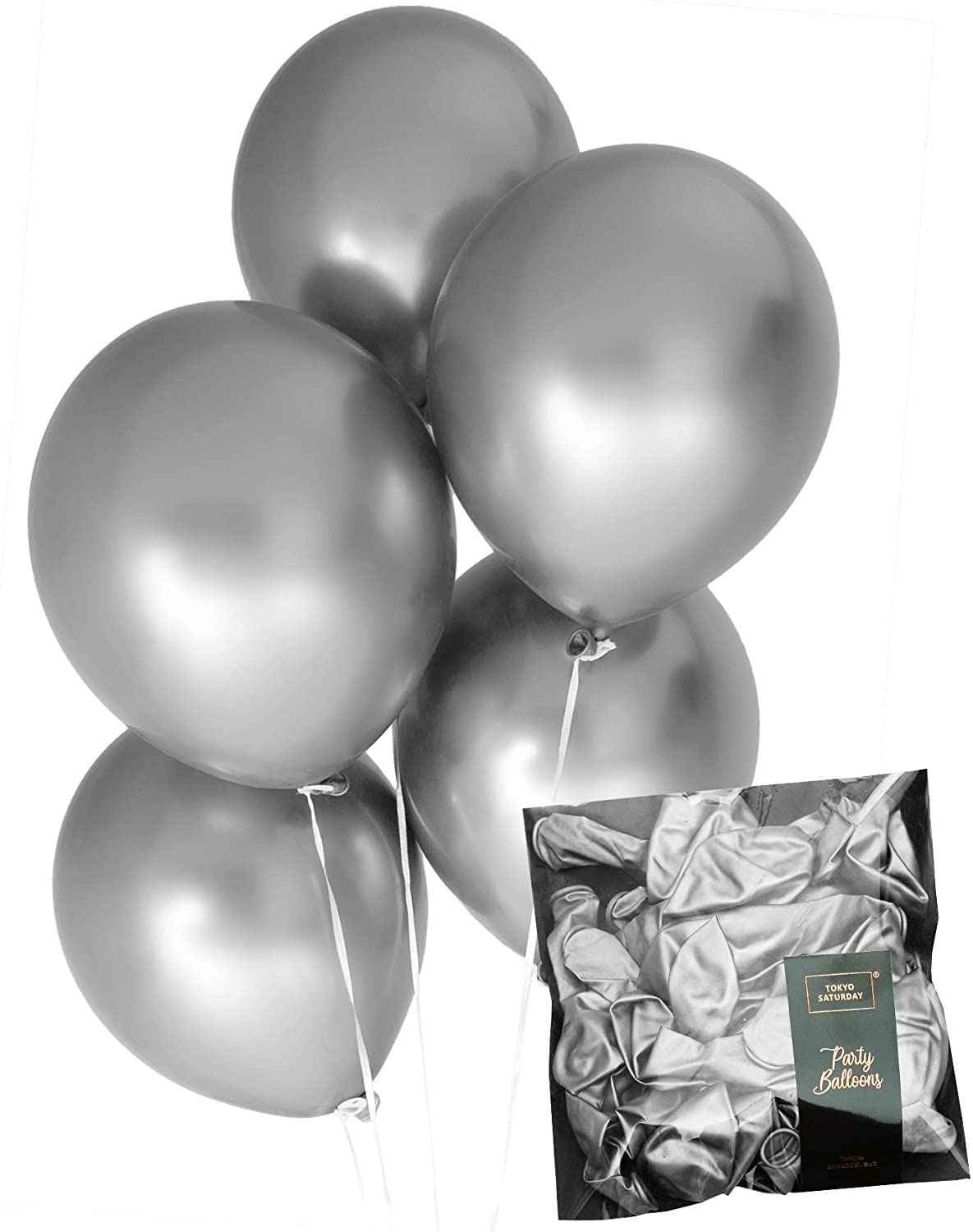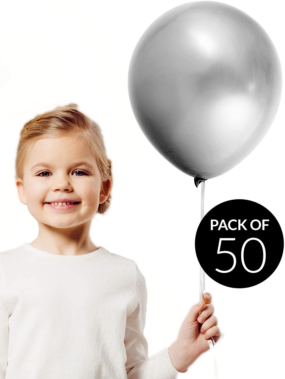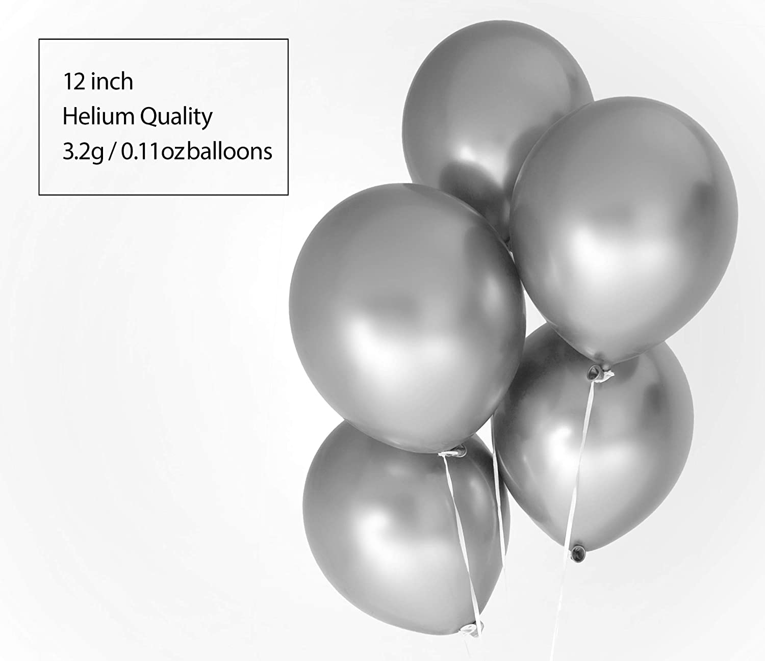 12 英寸乳胶金属镀铬银色气球 - 50 个装气球装饰厚氦气品质