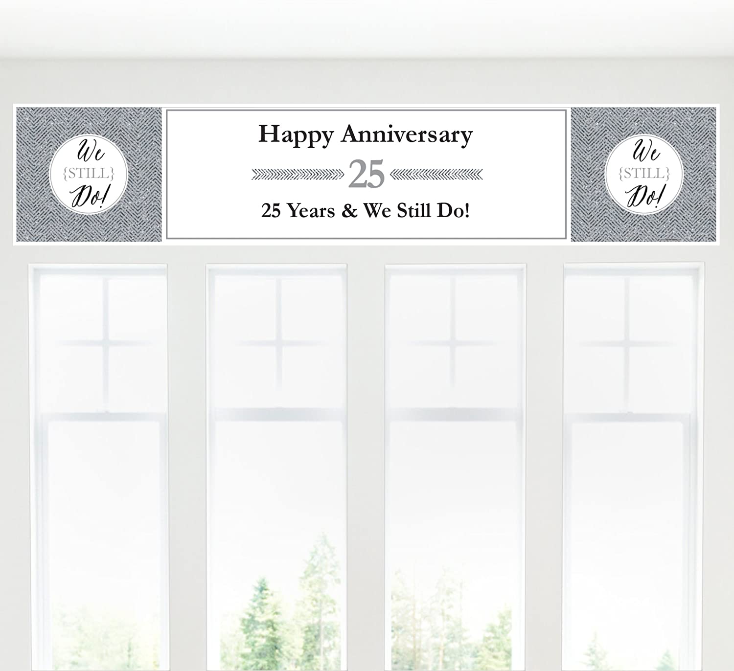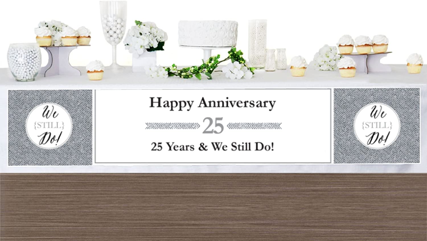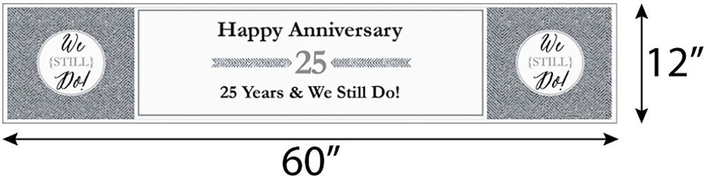 尺寸:我们仍然如此 - 25 周年结婚纪念横幅尺寸为 1 英尺 x 5 英尺。
