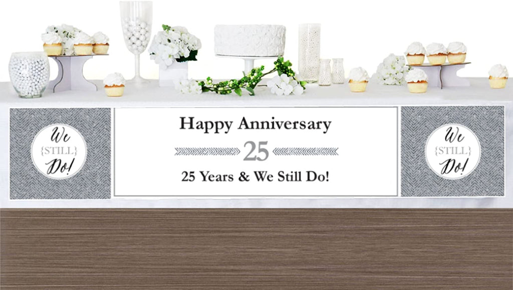 我们依然如此 - 25 周年结婚纪念日横幅是您的银色和灰色派对令人印象深刻的结婚周年纪念装饰。