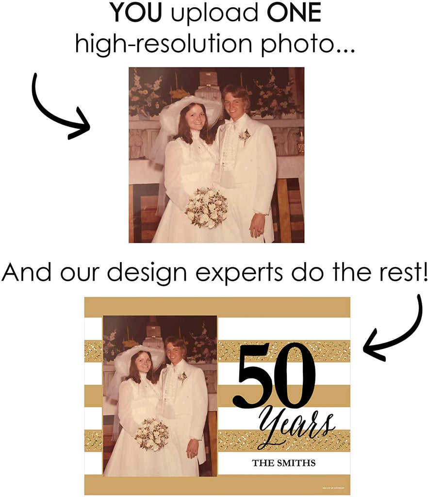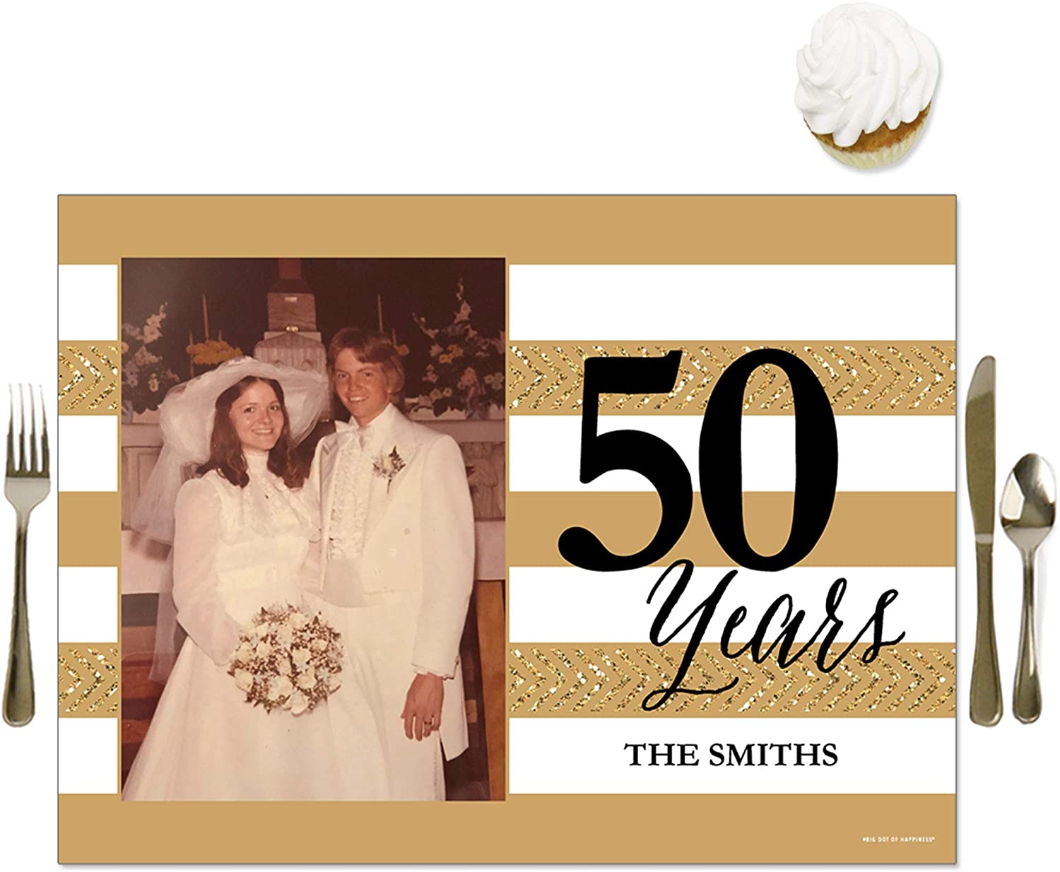 定制装饰:We Still Do - 50周年结婚纪念照片餐垫是趣味十足的派对餐桌装饰,既能彰显个性化风格,又能轻松便捷。只需点击“立即定制”即可添加您的高清照片。餐垫字符数限制为15个字符,您还可以添加姓名。