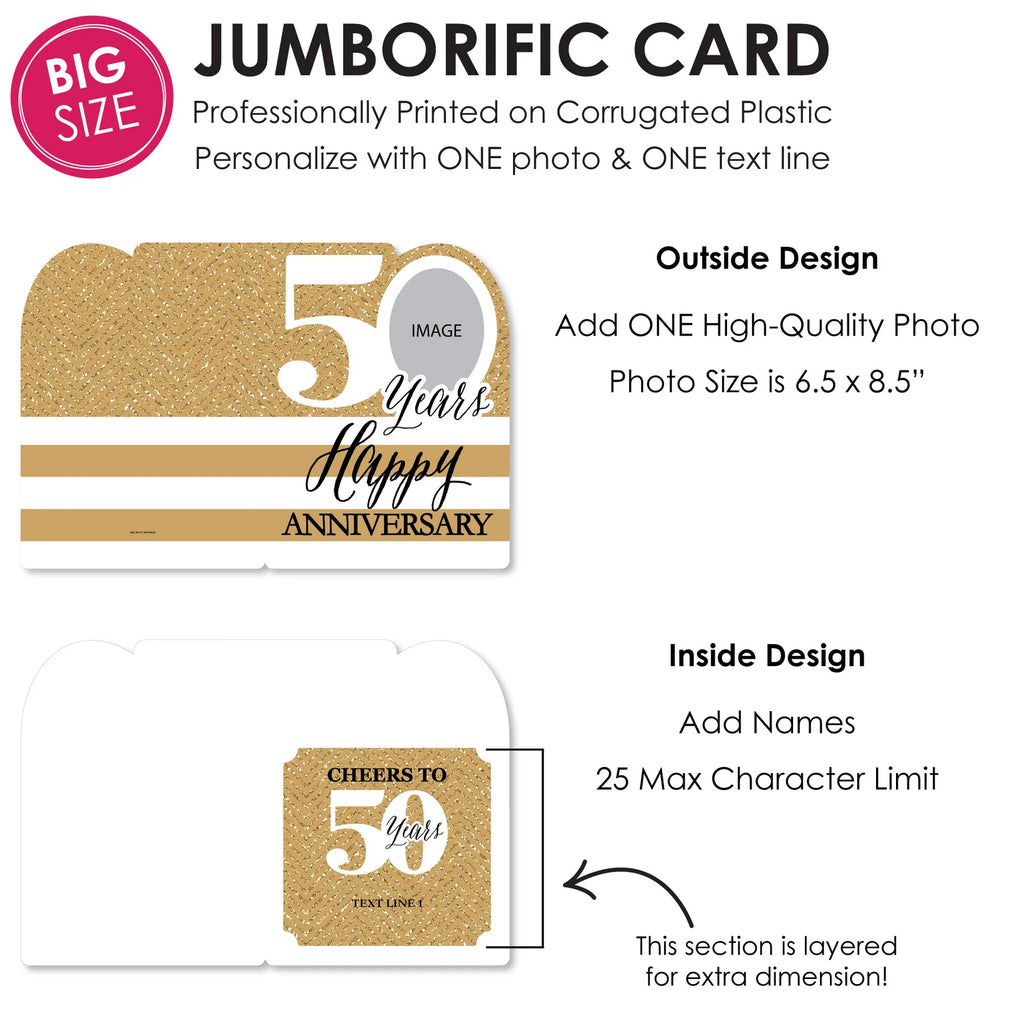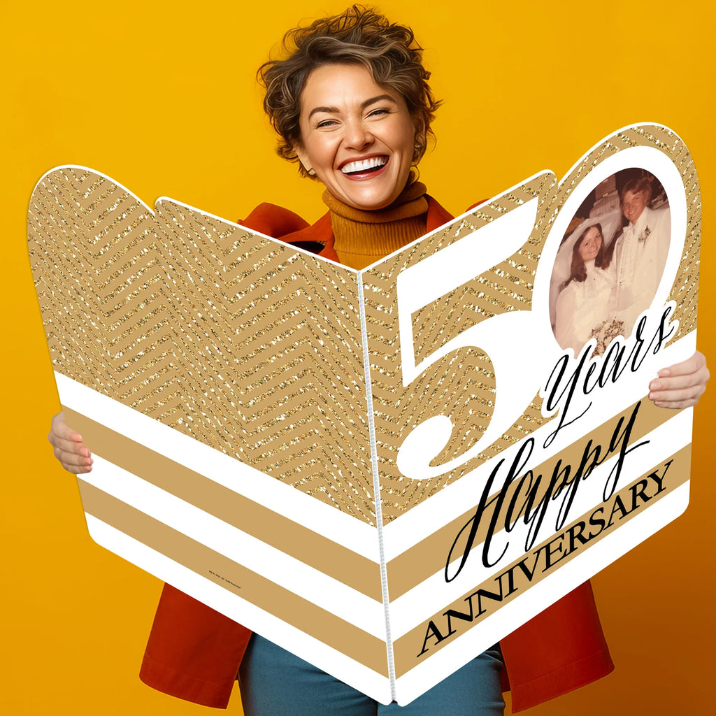 准备好大展宏图了吗?那就来我们的“我们依然热爱——50周年结婚纪念照片特大贺卡”吧!它能让你的周年纪念派对更加特别!贺卡正面印有“结婚周年快乐”字样,并配有你的照片;内页则印有“为50周年干杯”字样,并可个性化定制姓名,是庆祝贵宾的有趣方式。50周年纪念特大贺卡空间充裕,可书写多条信息,尺寸大小也非常适合多人签名,非常适合职场庆典、家庭聚会,甚至是小型私密派对。所以,别再满足于平凡了。用一张个性化的结婚纪念特大贺卡,让你的特别收礼人惊艳亮相!