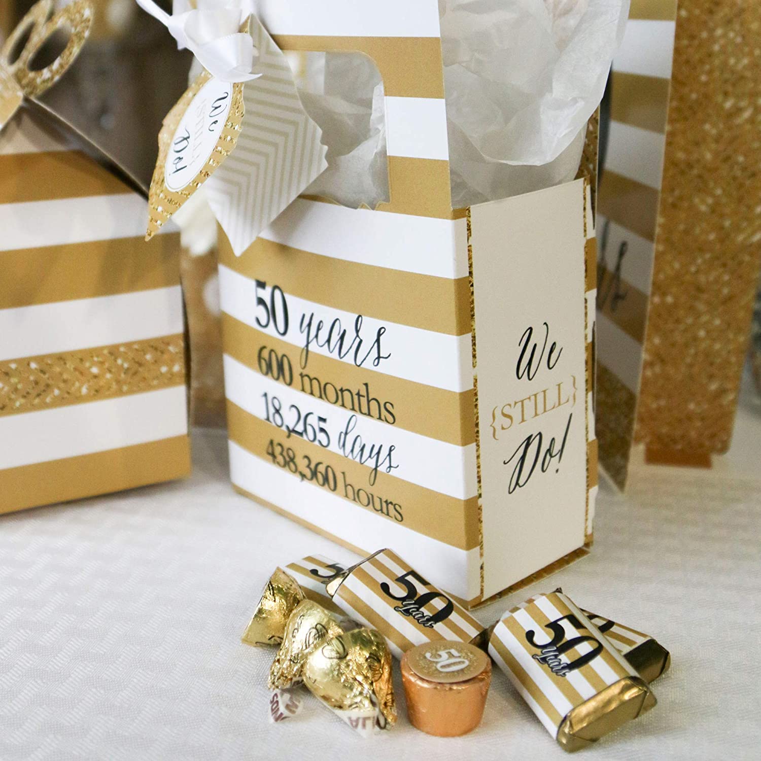 我们依然如此 - 50 周年结婚纪念日迷你糖果包装纸包含 40 张糖果贴纸,非常适合打造可爱的第五十周年糖果自助餐或独特的周年纪念派对礼物。