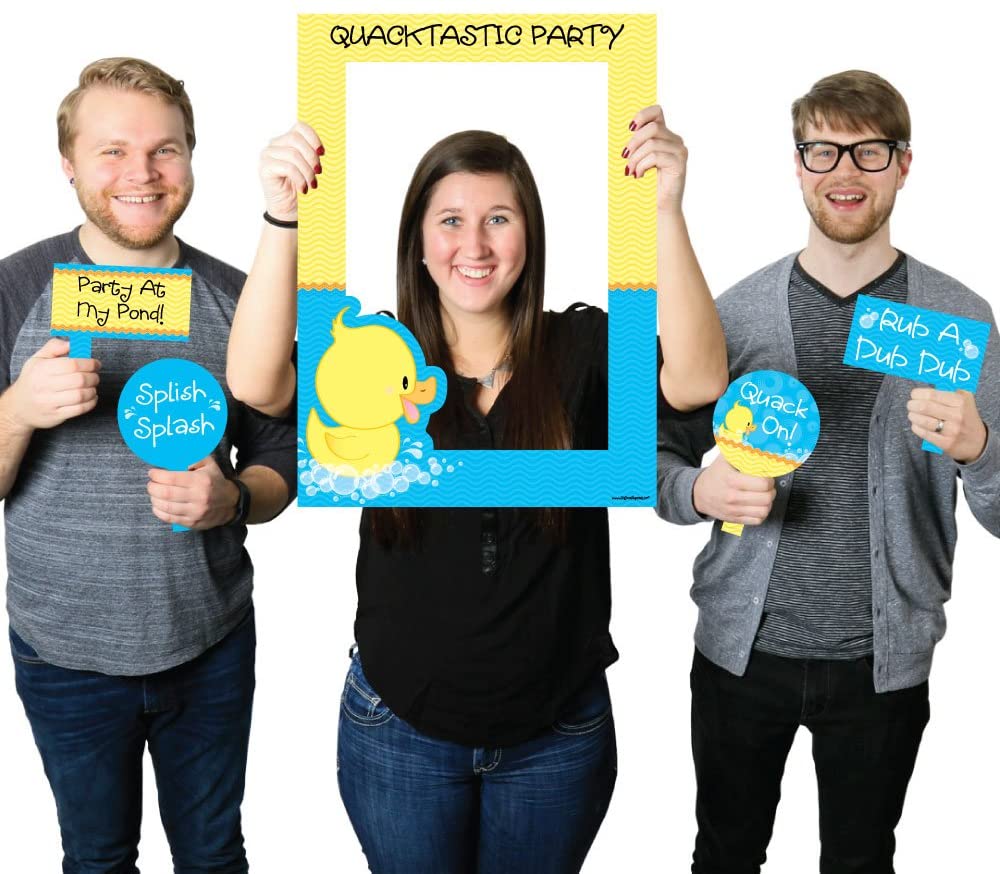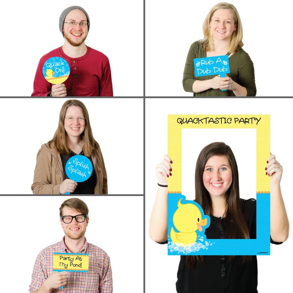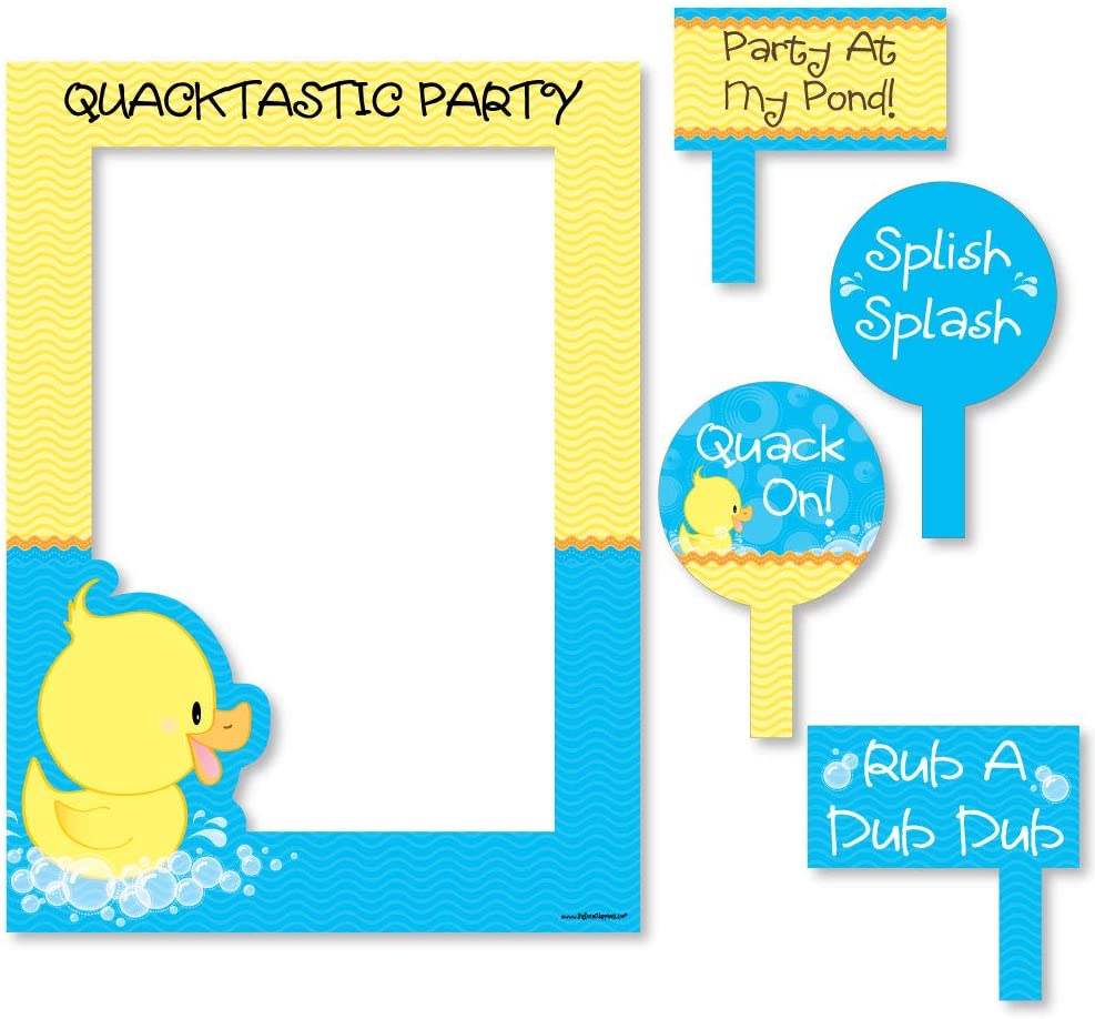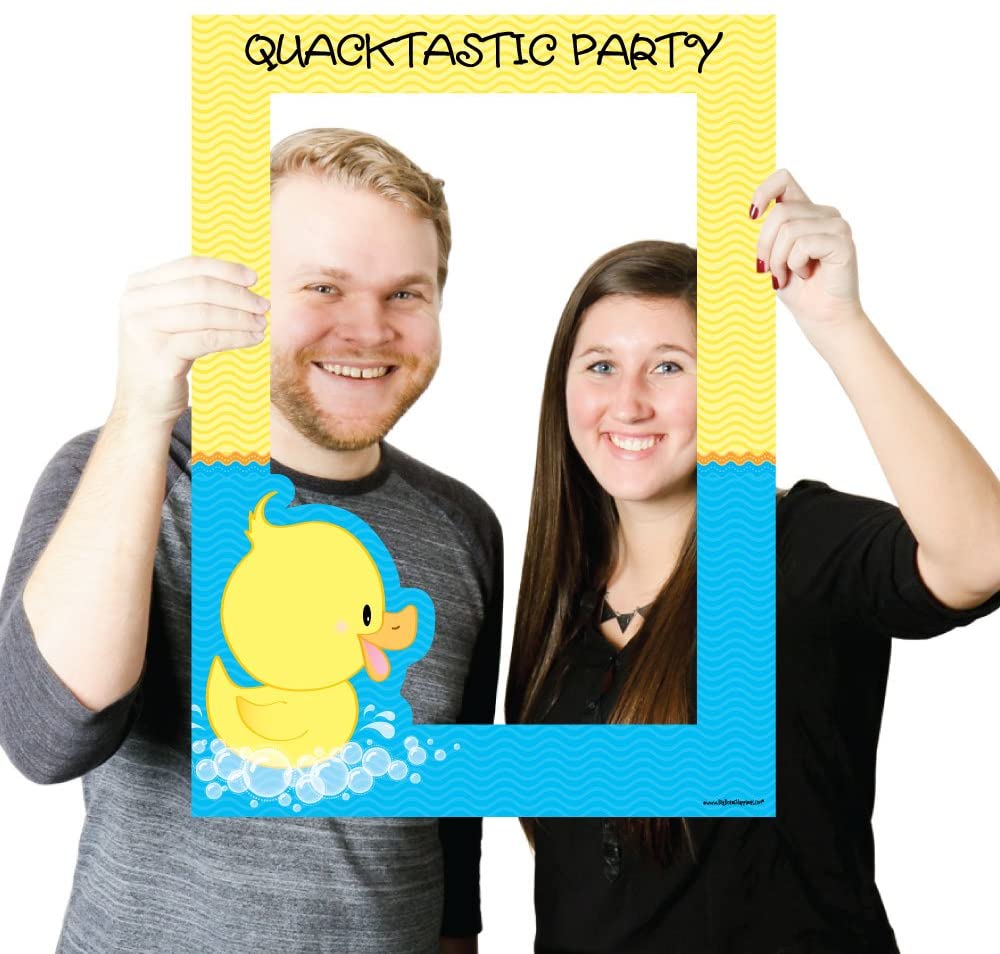 5 件套照相亭相框和道具套装,包含 1 个 Ducky Duck 照相亭相框道具、2 个圆形照相亭道具和 2 个矩形照相亭道具 - 非常适合生日派对或迎婴派对。用有趣的 Rubber Ducky 照相亭道具,为亲朋好友拍摄有趣且值得分享的派对照片,留下美好的回忆!