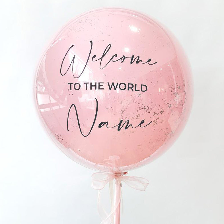 个性化双层粉色泡泡气球 - 24 英寸 - 玫瑰金五彩纸屑 - 含氦气