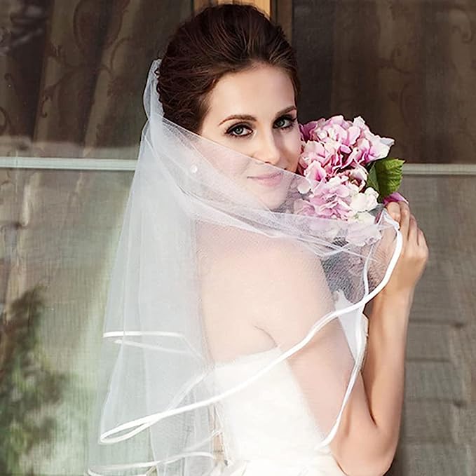 【高品质新娘薄纱】这款短款婚纱采用高品质柔软新娘幻觉薄纱制成,边缘饰有装饰,轻盈有弹性,还配有可爱的梳子,可紧贴您的头发,不易脱落。
