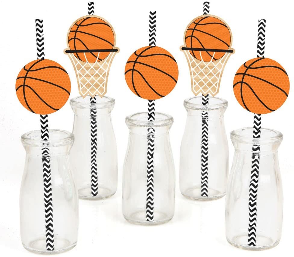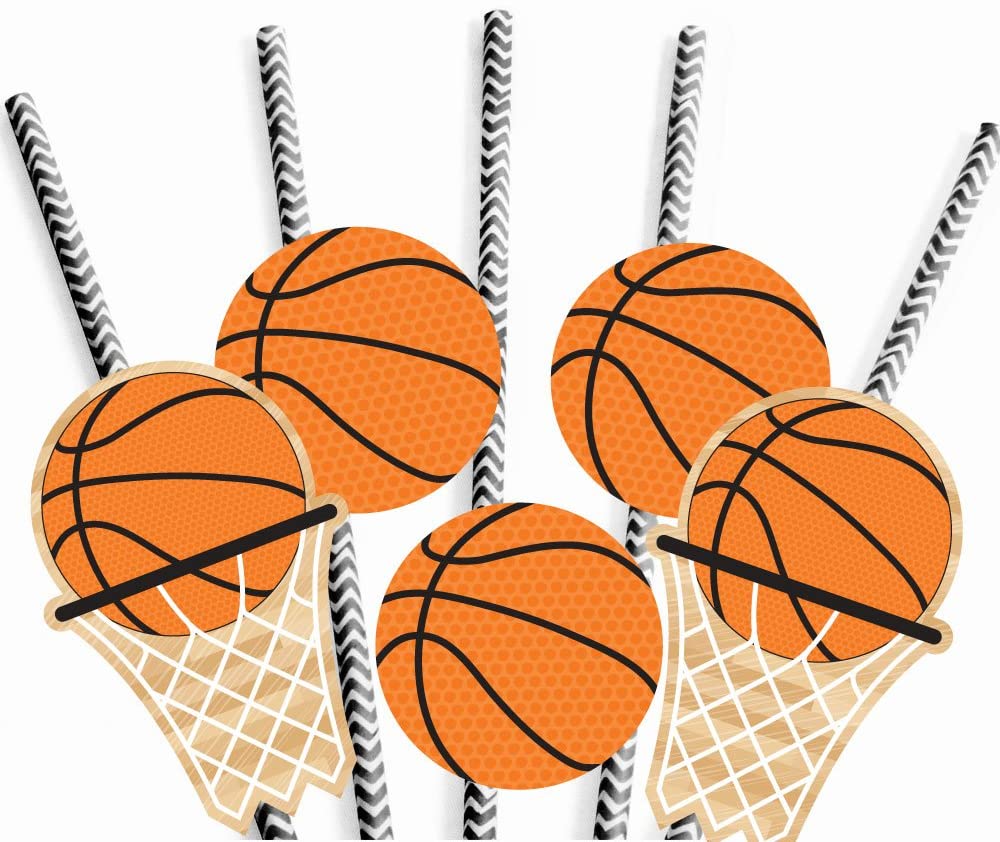 Nothin' but Net - 篮球纸吸管装饰 - 婴儿洗礼或生日派对装饰吸管 - 24 件套