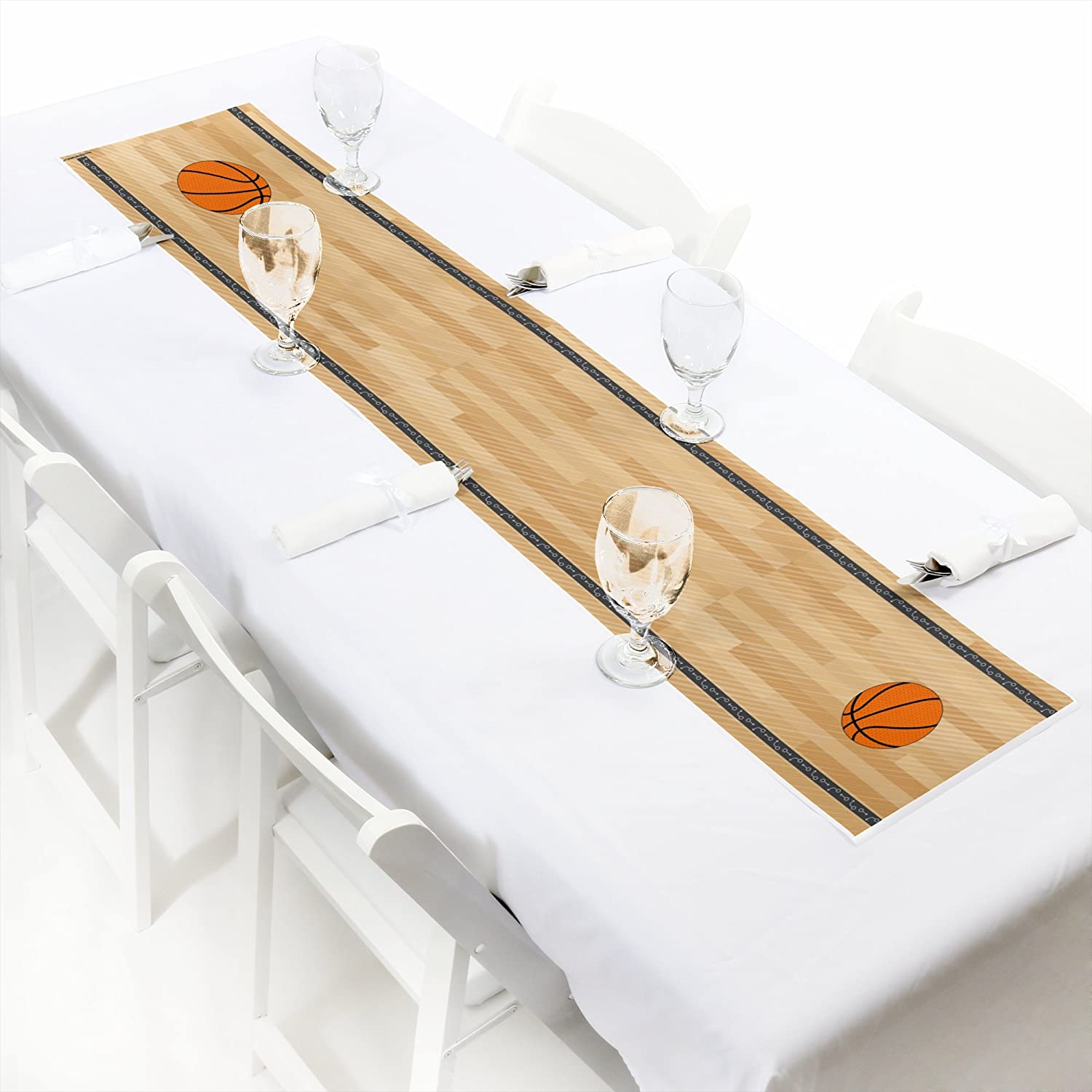 篮球网 - 小型婴儿洗礼或生日派对纸质桌旗 - 12 x 60 英寸
