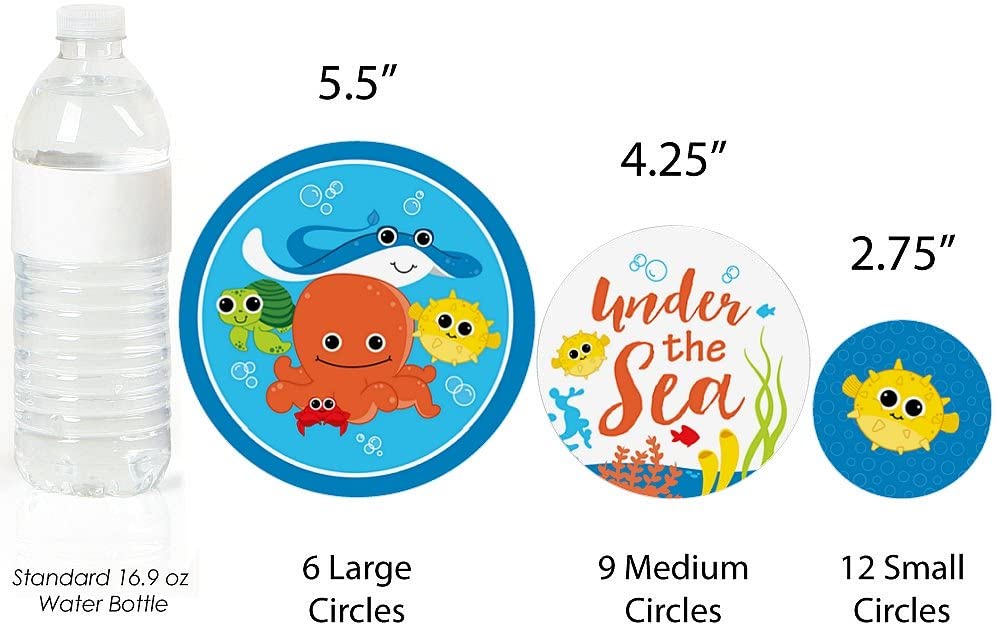海底生物巨型圆形彩纸屑,包含27个大型迎婴派对或生日派对彩纸屑。海底生物派对装饰是举办水下海洋派对的完美之选。