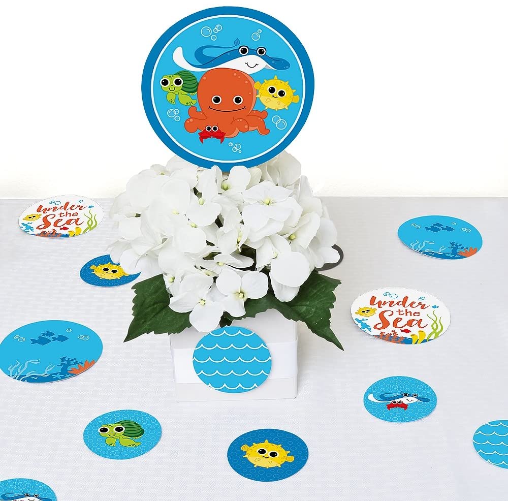 海底小动物 - 婴儿洗礼或生日派对巨型圆形五彩纸屑 - 派对装饰 - 大号五彩纸屑 27 片