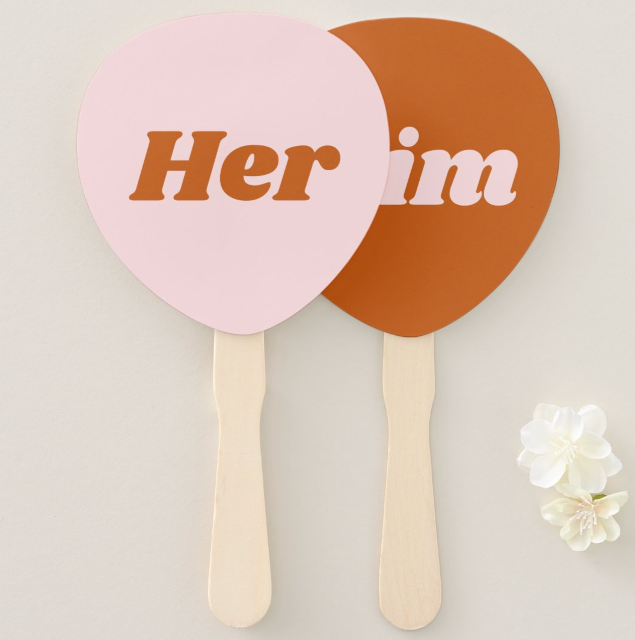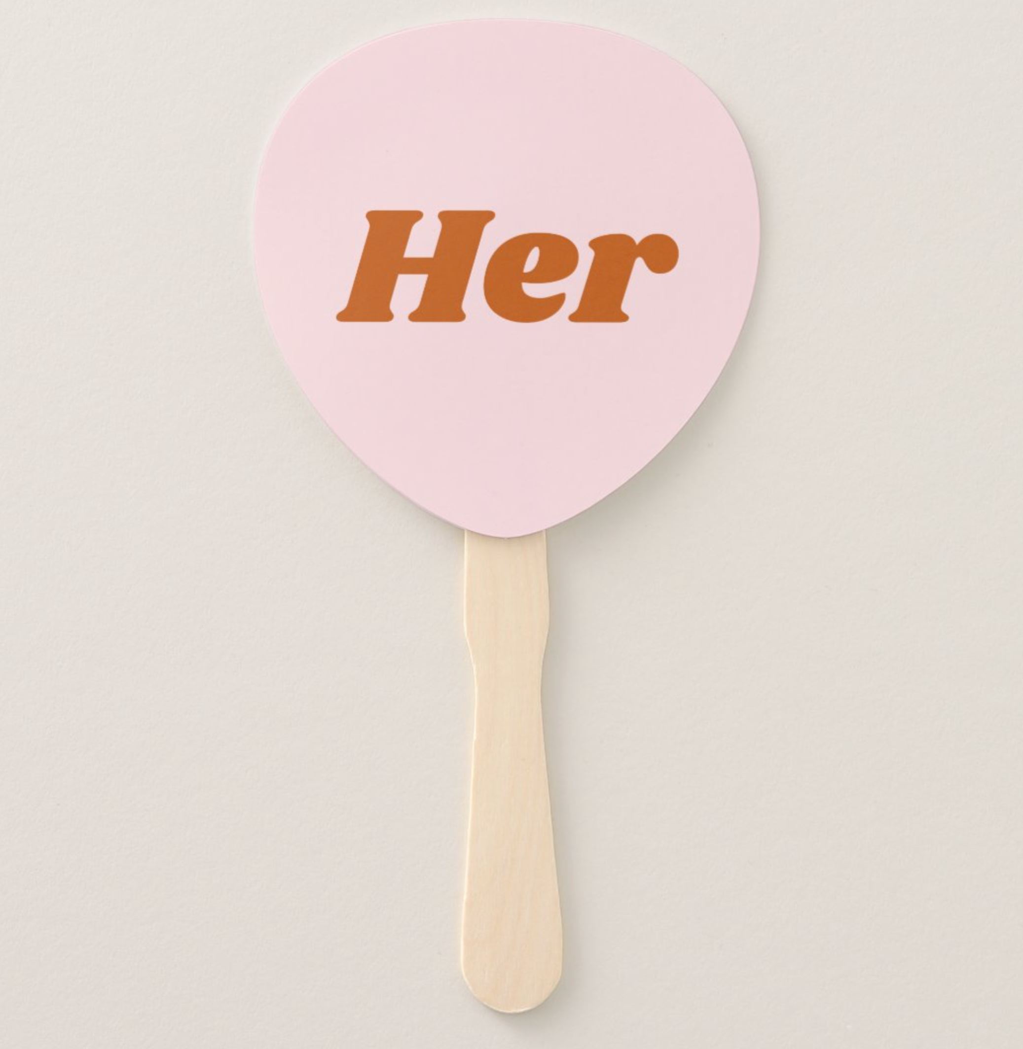 “我的天哪!”婚礼太热了(比喻,不是字面意思),你的宾客肯定需要一把风扇来降温。定制合适的风扇, 拥有并持有。